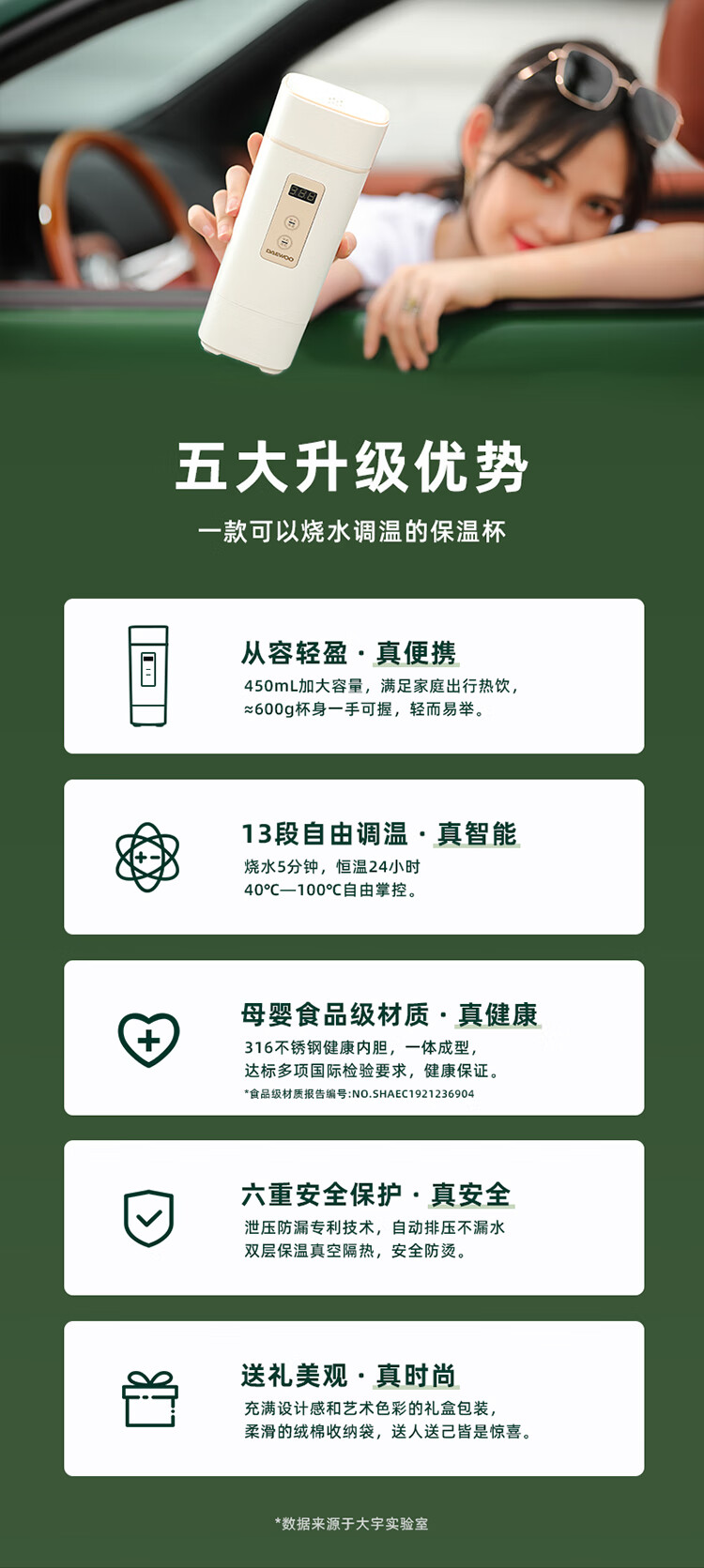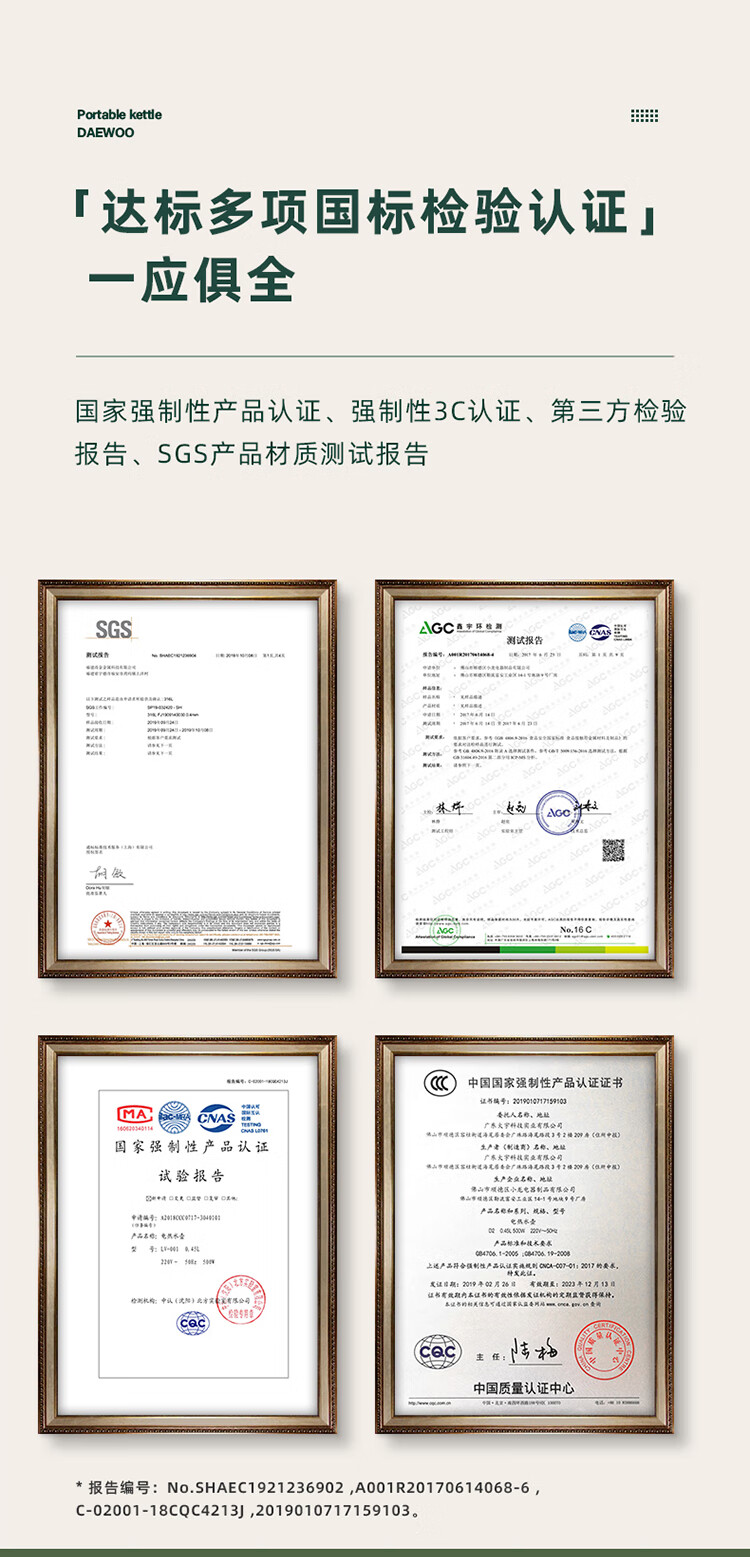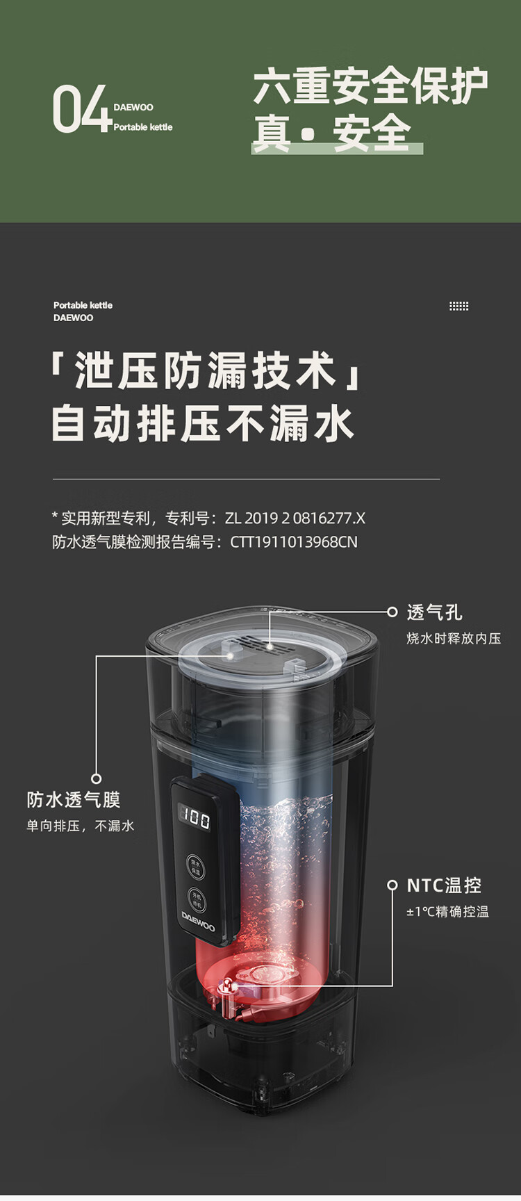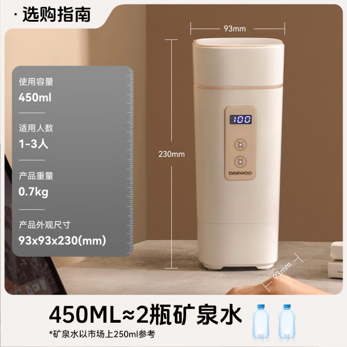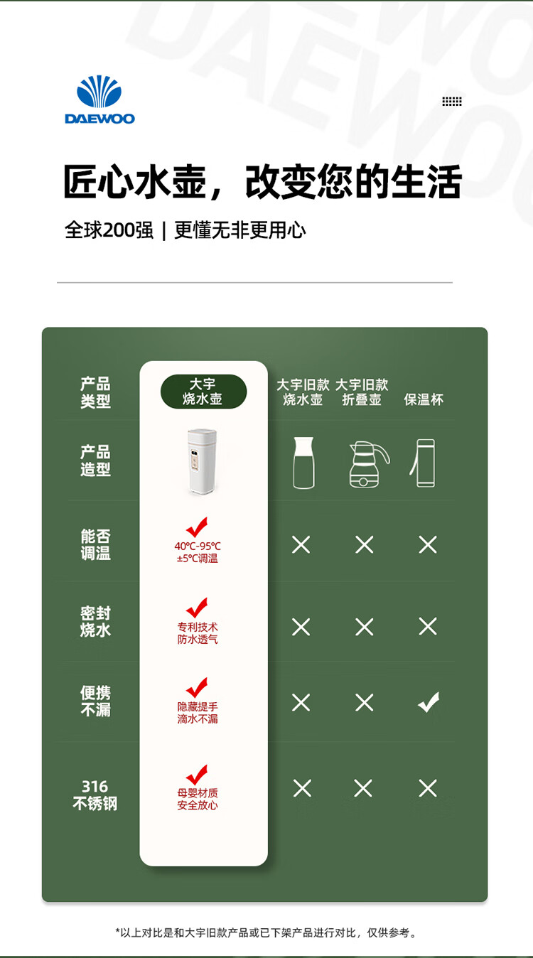 商品名称:大宇(DAEWOO)便携式电热水壶 450mL D2