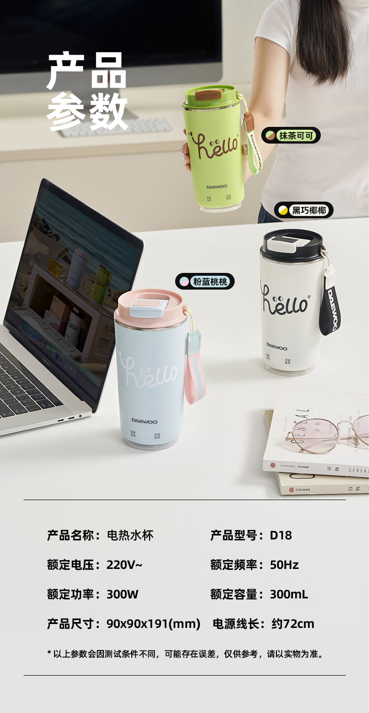 商品名称:大宇(DAEWOO)便携式电热水杯 300mL D18