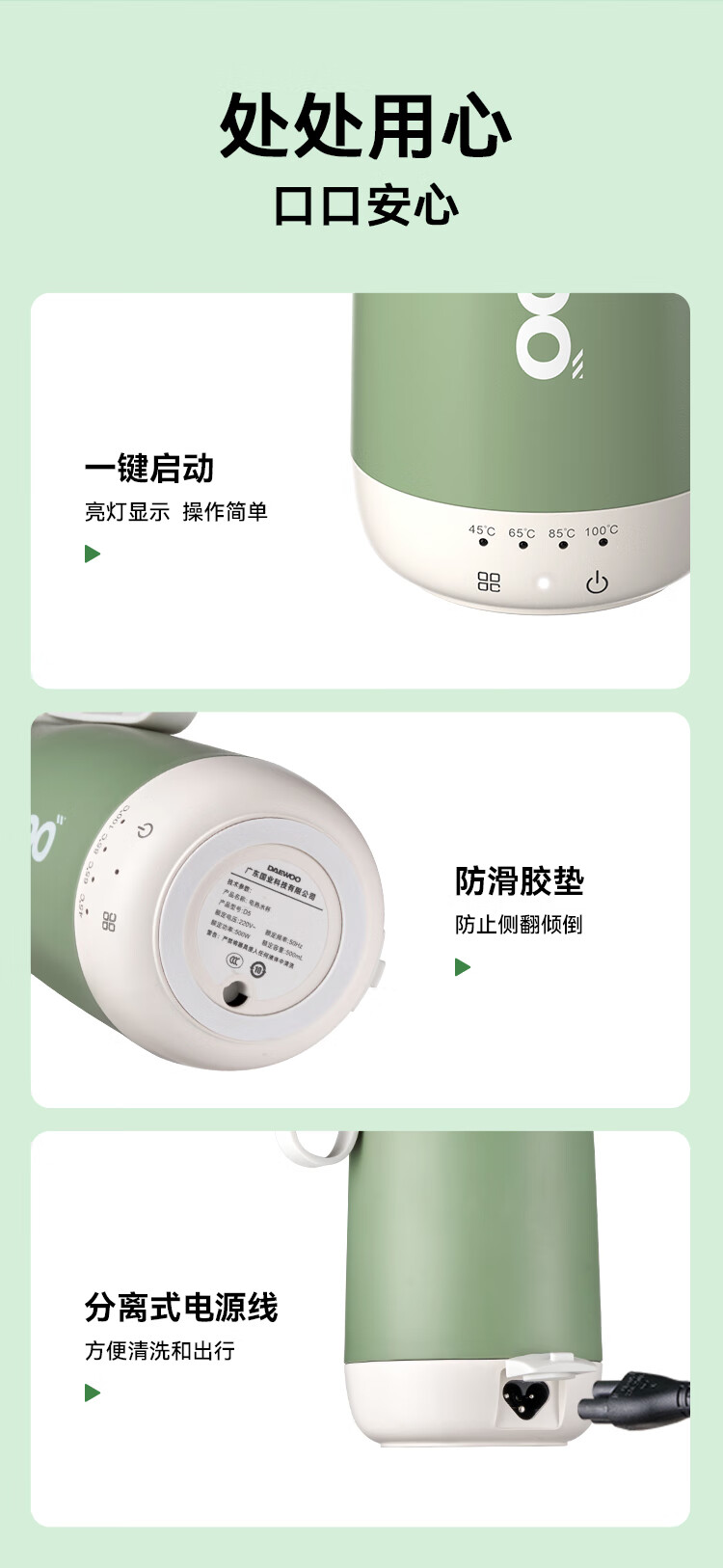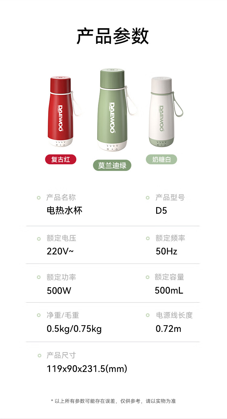 商品名称:大宇(DAEWOO)电热水杯 500mL D5