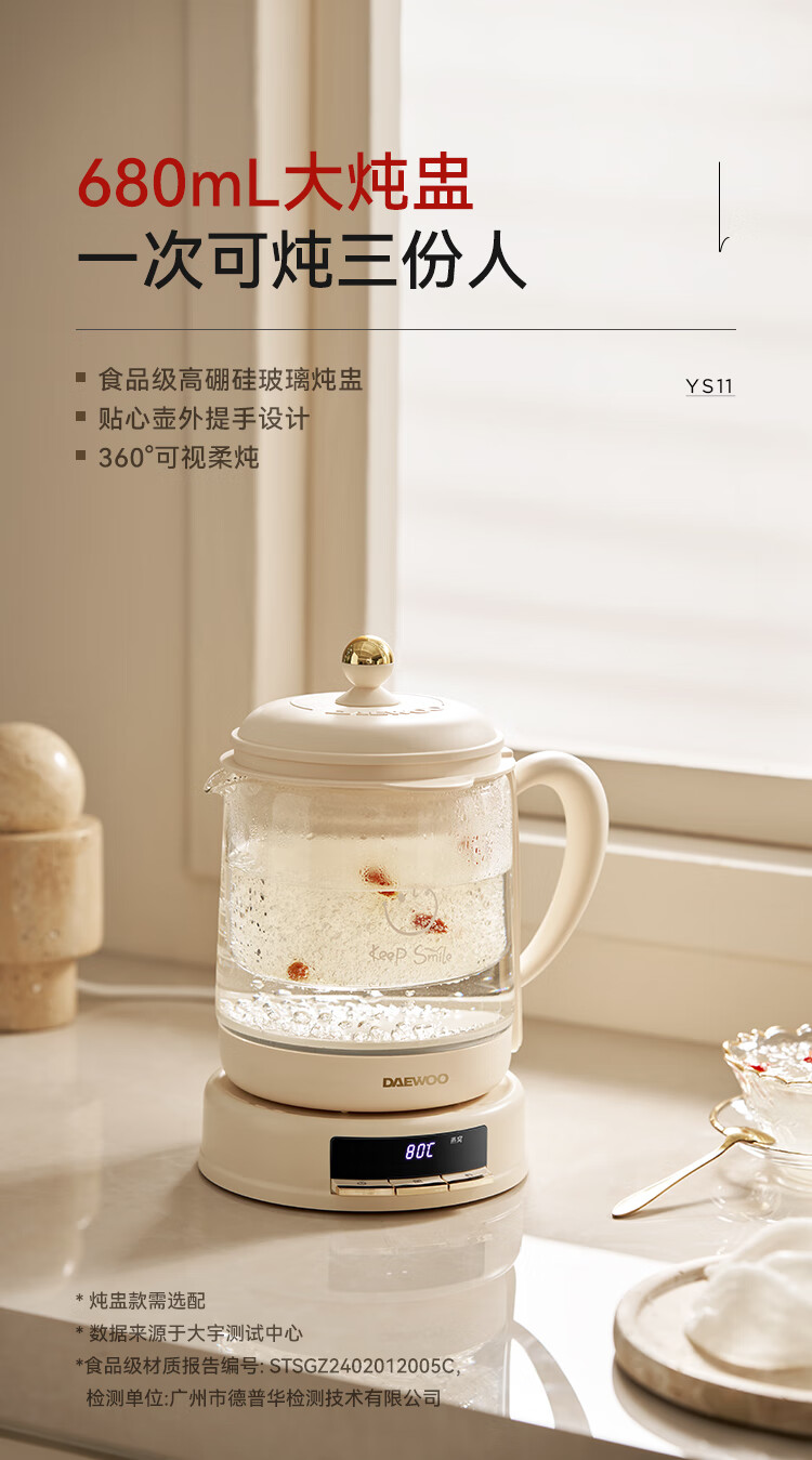 大宇(DAEWOO)养生壶 1.5L YS11S(炖盅款)