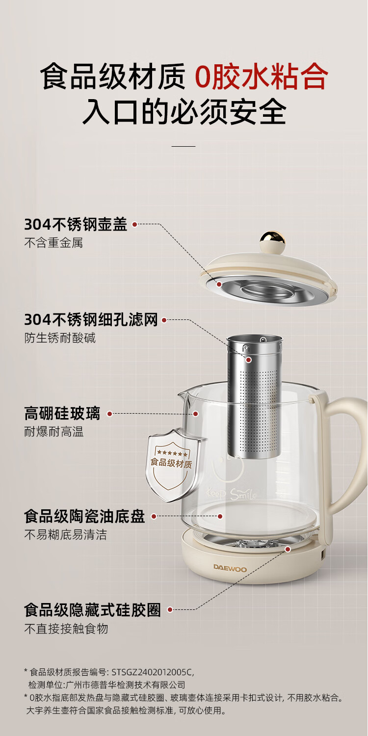 商品名称:大宇(DAEWOO)养生壶 1.5L YS11S(炖盅款)