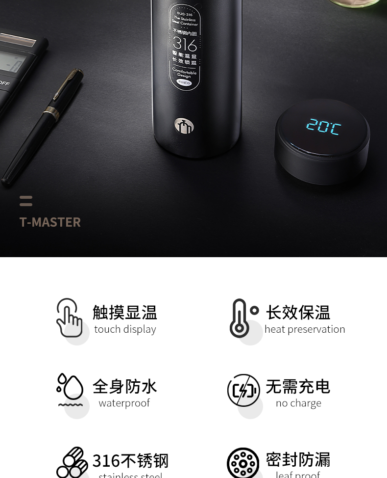 商品名称:富光 茶马仕数显不锈钢保温杯(流通款)488ML TMZ2001X-488