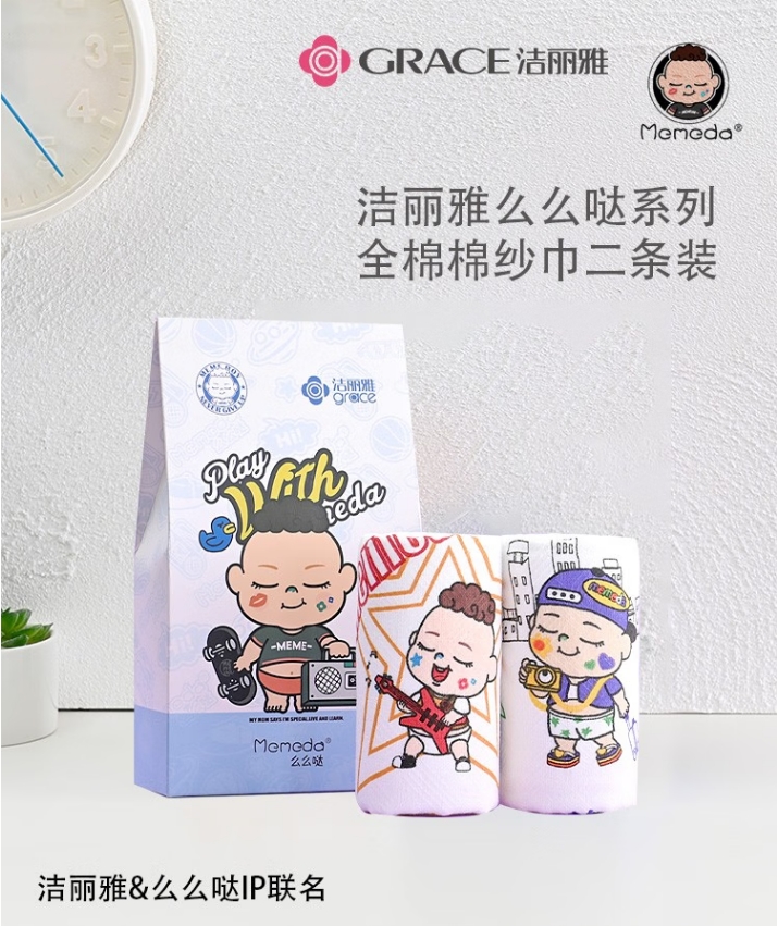 洁丽雅 萌动-2 50*25cm 45g 么么哒童巾*2条
