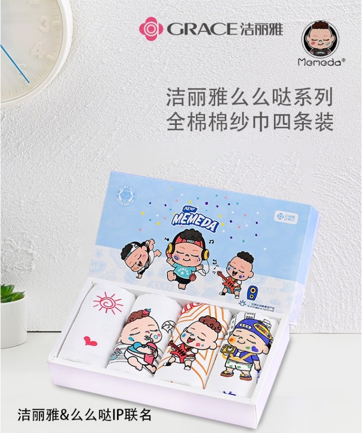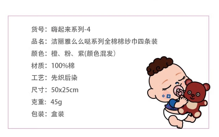 商品名称:洁丽雅 嗨起来-4 50*25cm 45g 么么哒童巾*4条