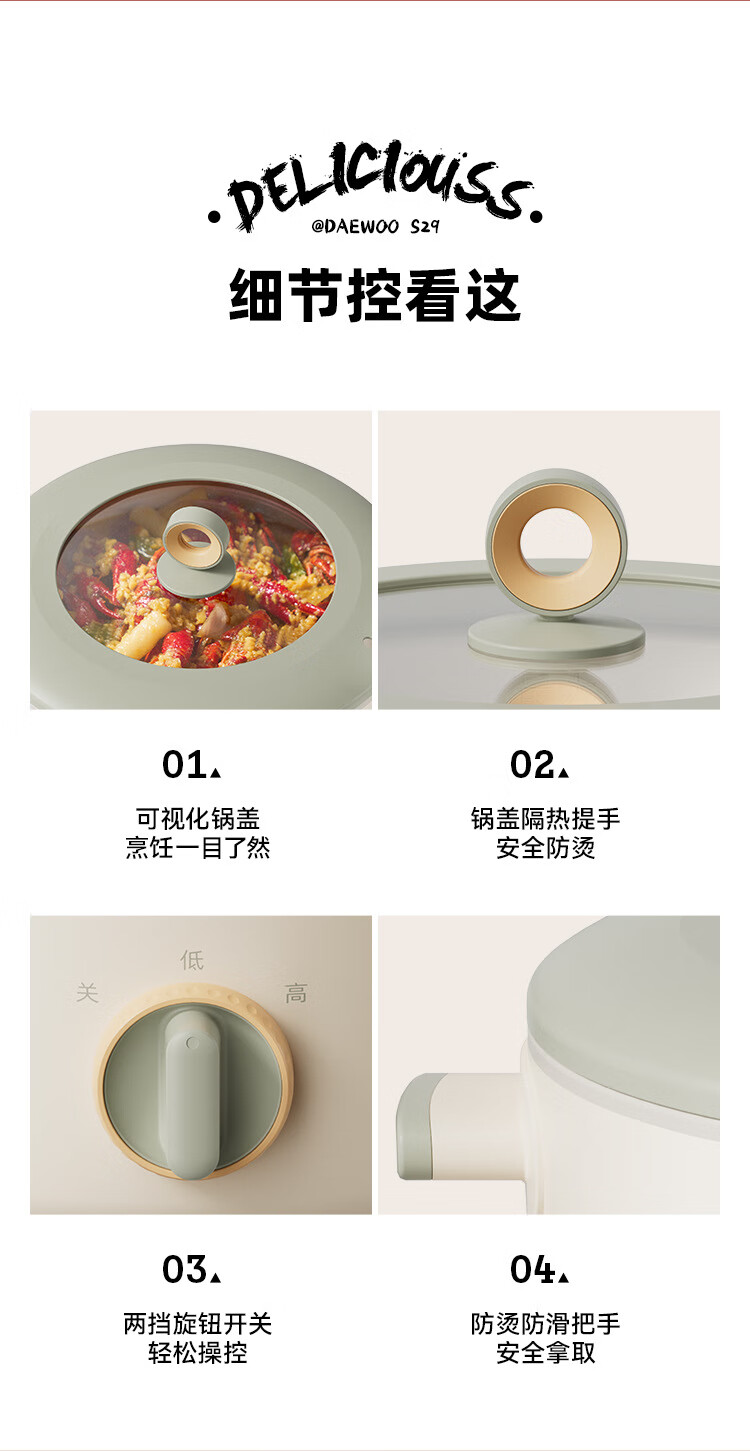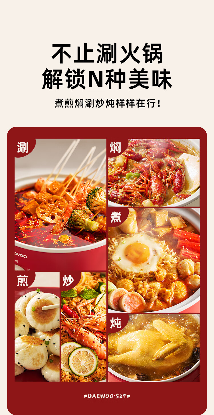 大宇(DAEWOO)多功能锅 1200W 4L S29-4.0