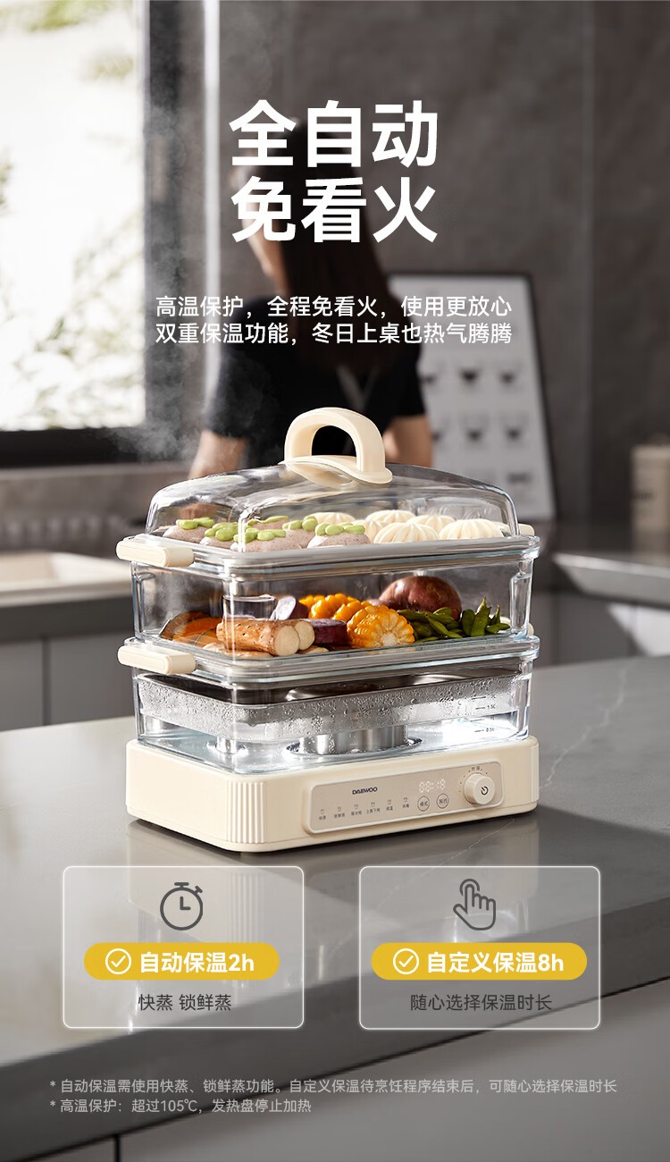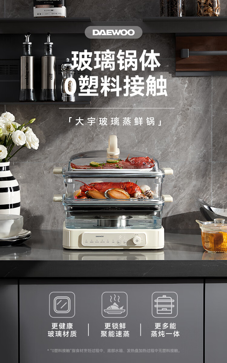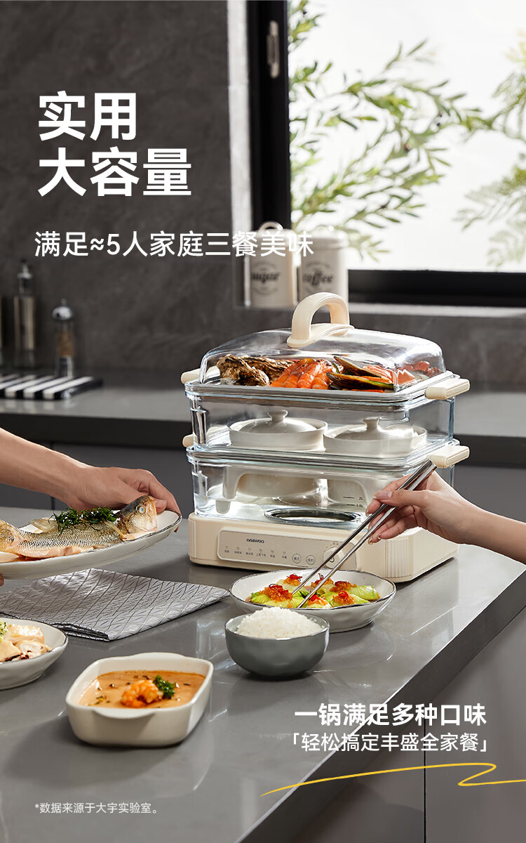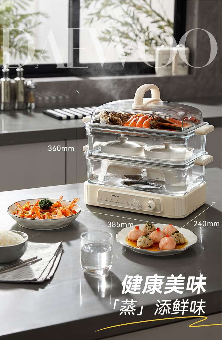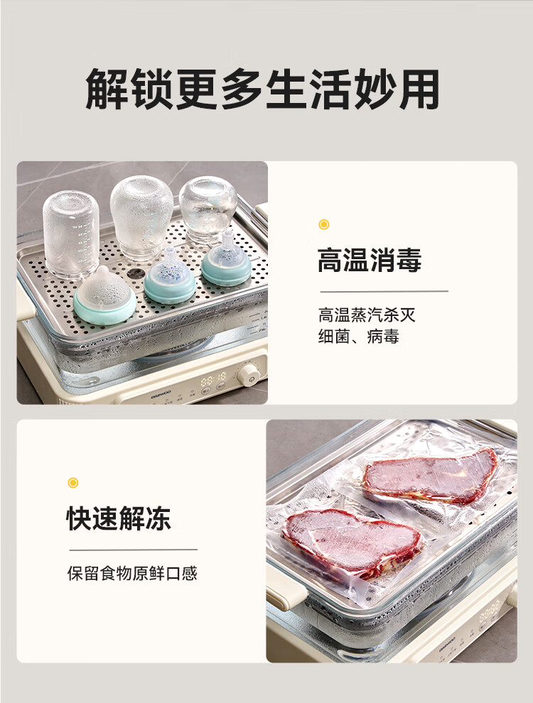 大宇(DAEWOO)多功能蒸汽料理锅 1500W 8L S22