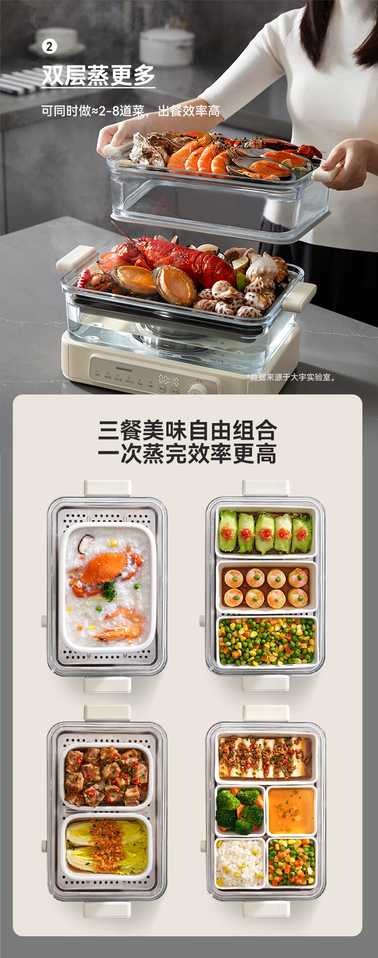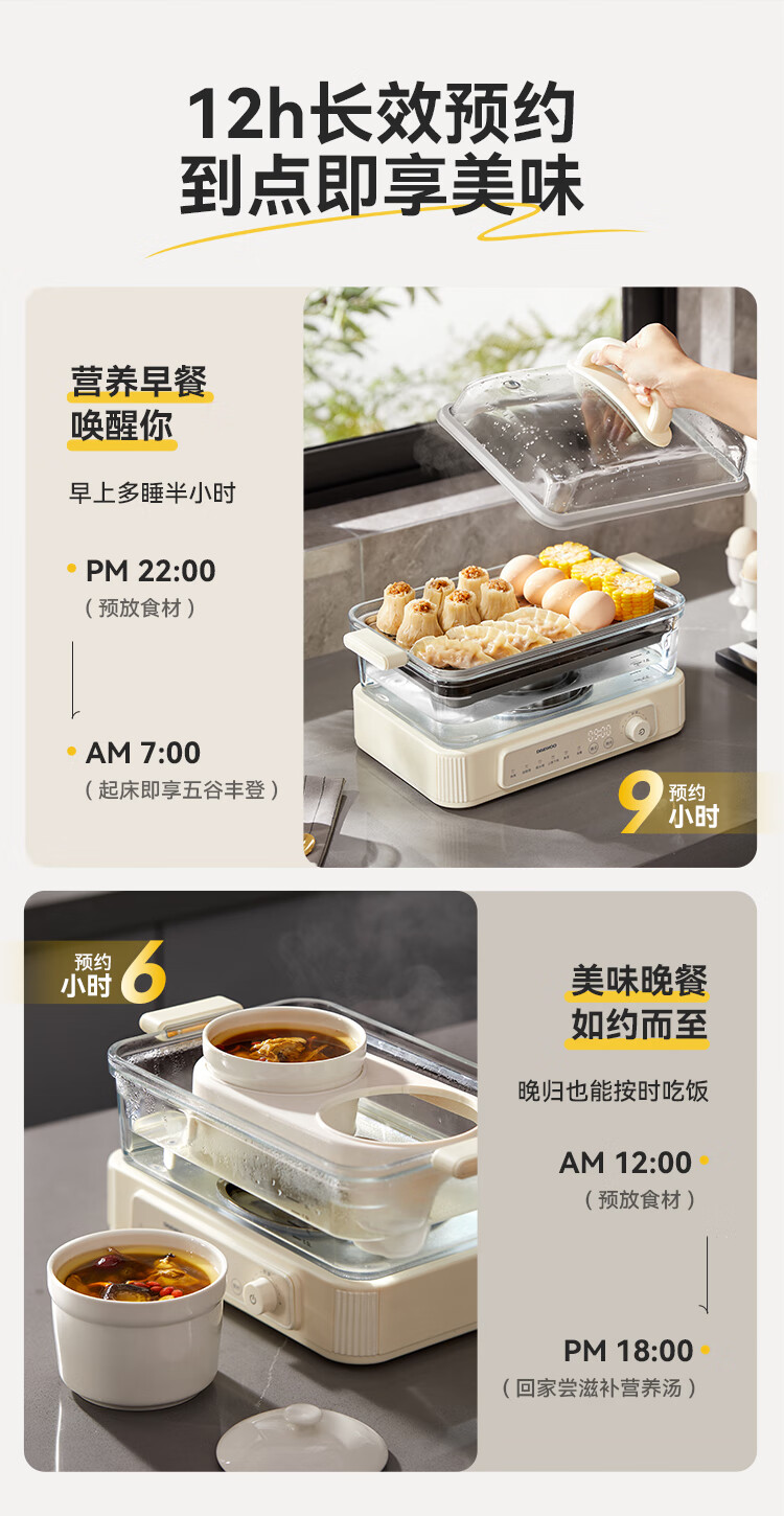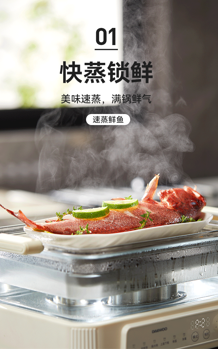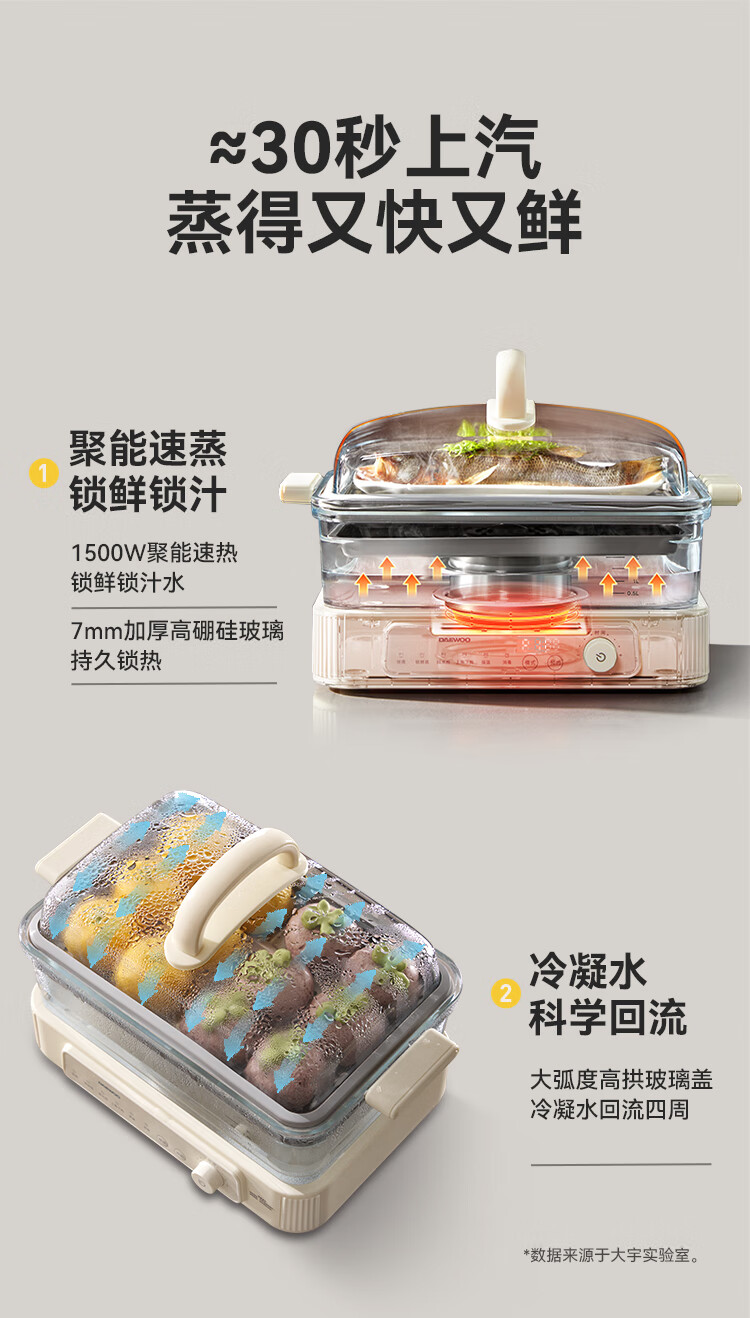 大宇(DAEWOO)多功能蒸汽料理锅 1500W 8L S22