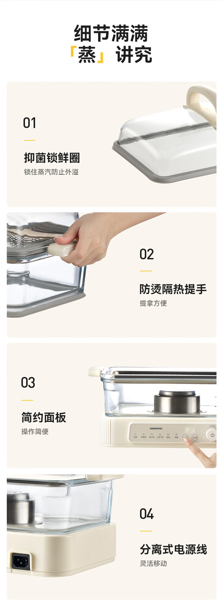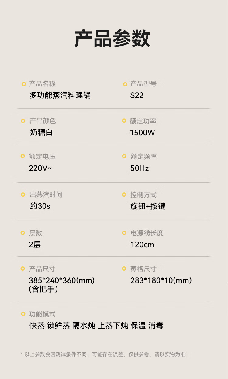 商品名称:大宇(DAEWOO)多功能蒸汽料理锅 1500W 8L S22