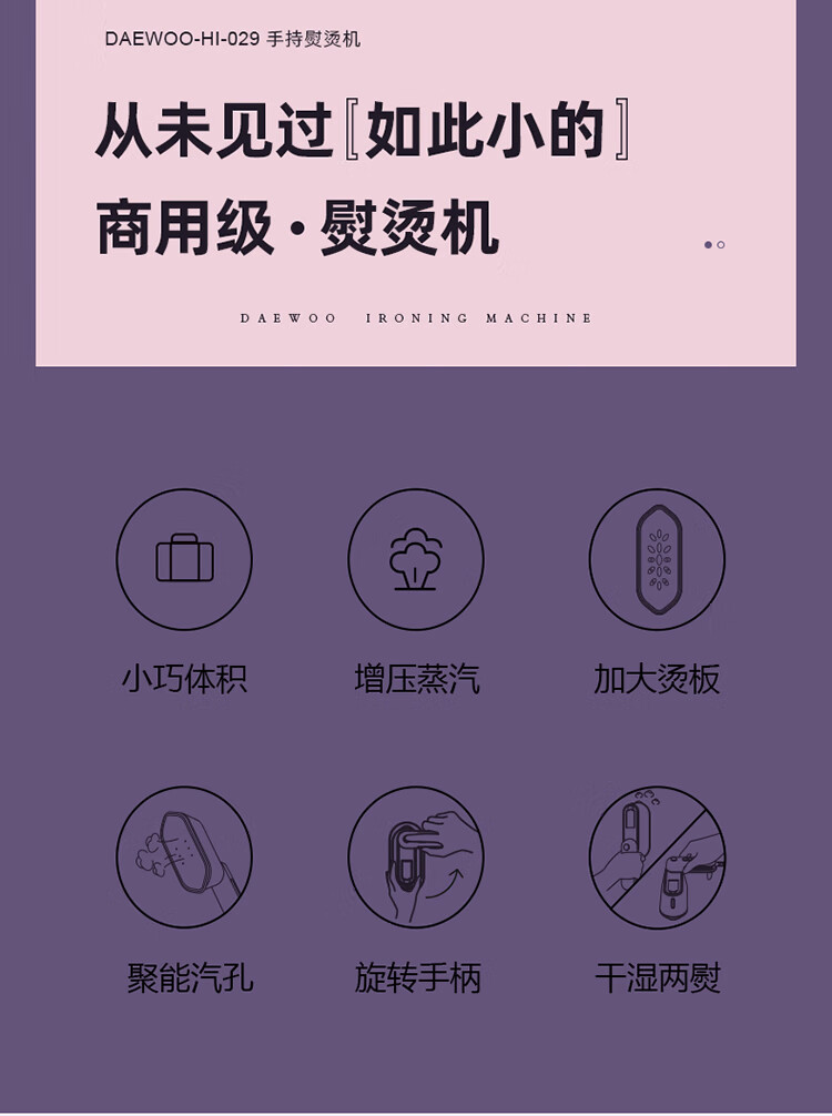 商品名称:大宇(DAEWOO)折叠蒸汽电熨斗 1000W HI-029
