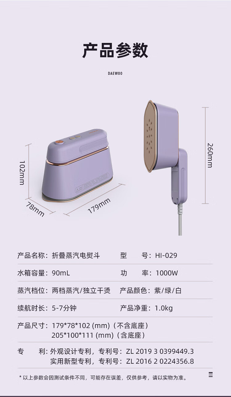 大宇(DAEWOO)折叠蒸汽电熨斗 1000W HI-029