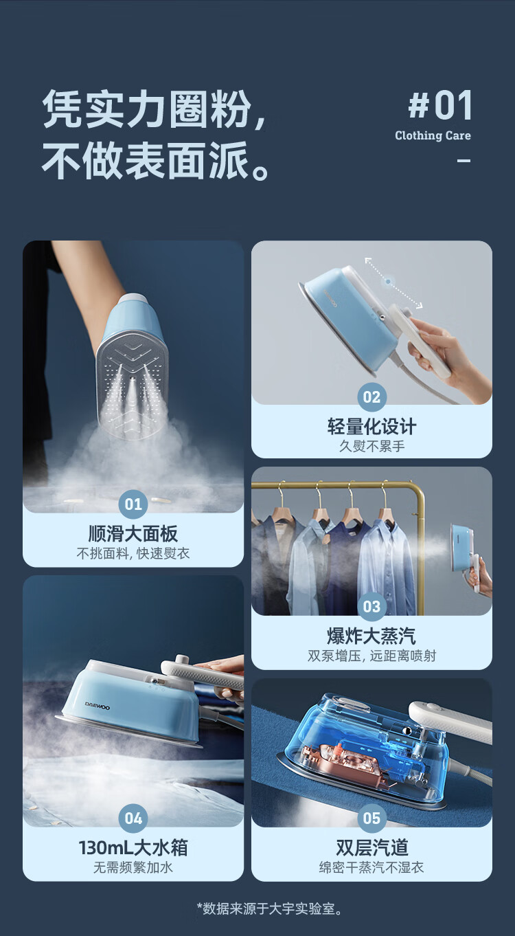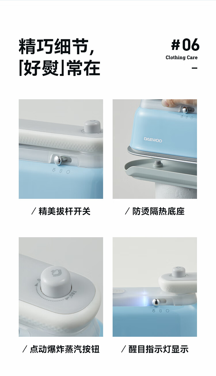 商品清单 :隔热垫*1 大宇挂烫机*1 产品说明书*1 保修卡*1