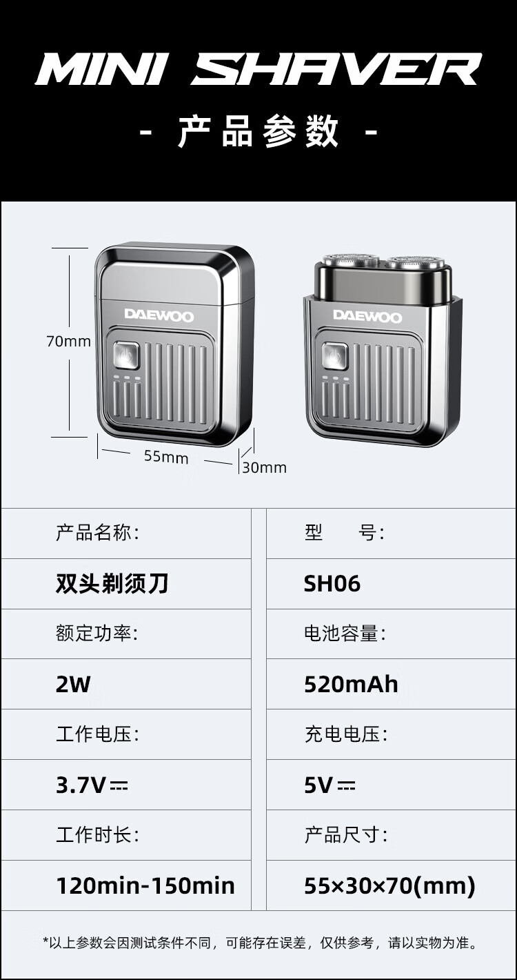 商品名称:大宇(DAEWOO)大宇双头剃须刀 2W SH06