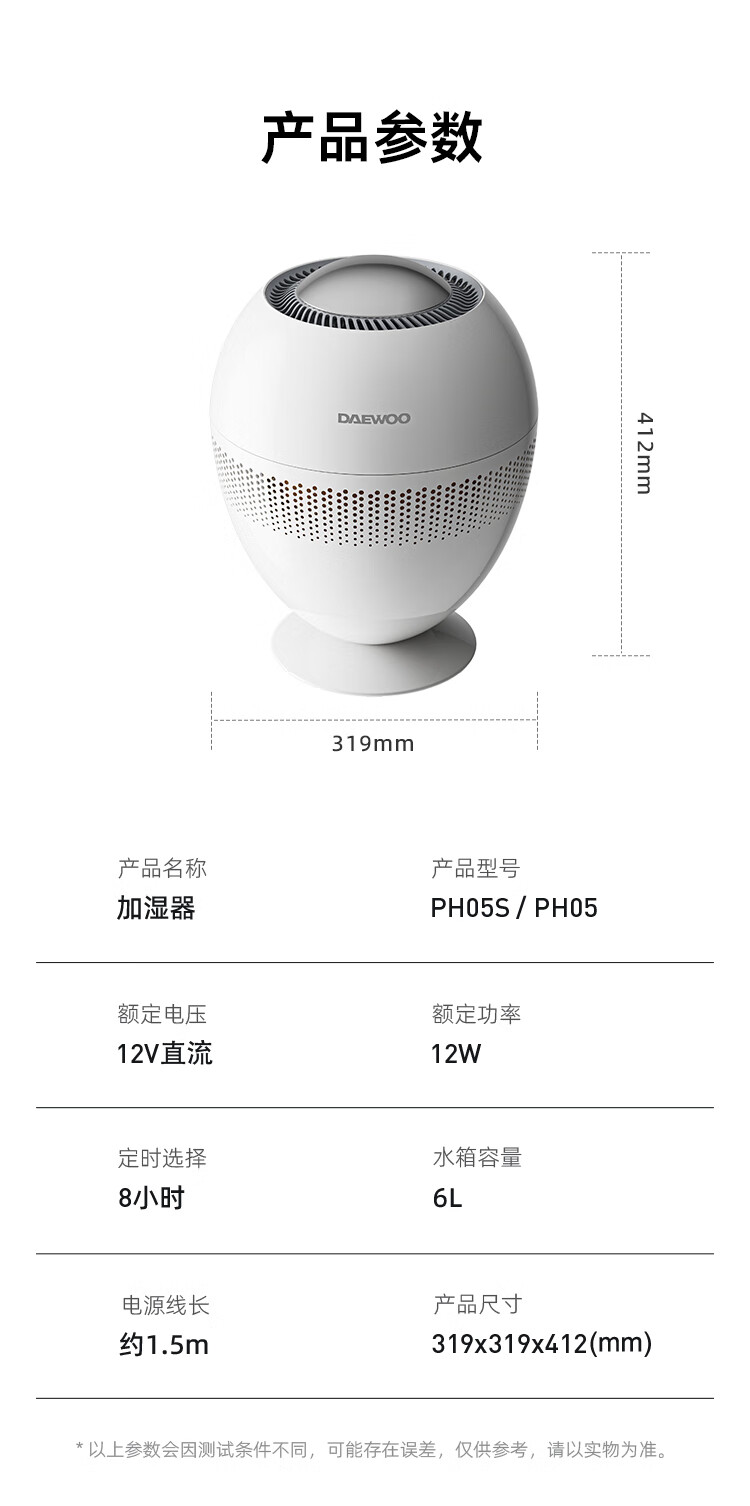 商品名称:大宇(DAEWOO)纯净型加湿器 12W PH05S