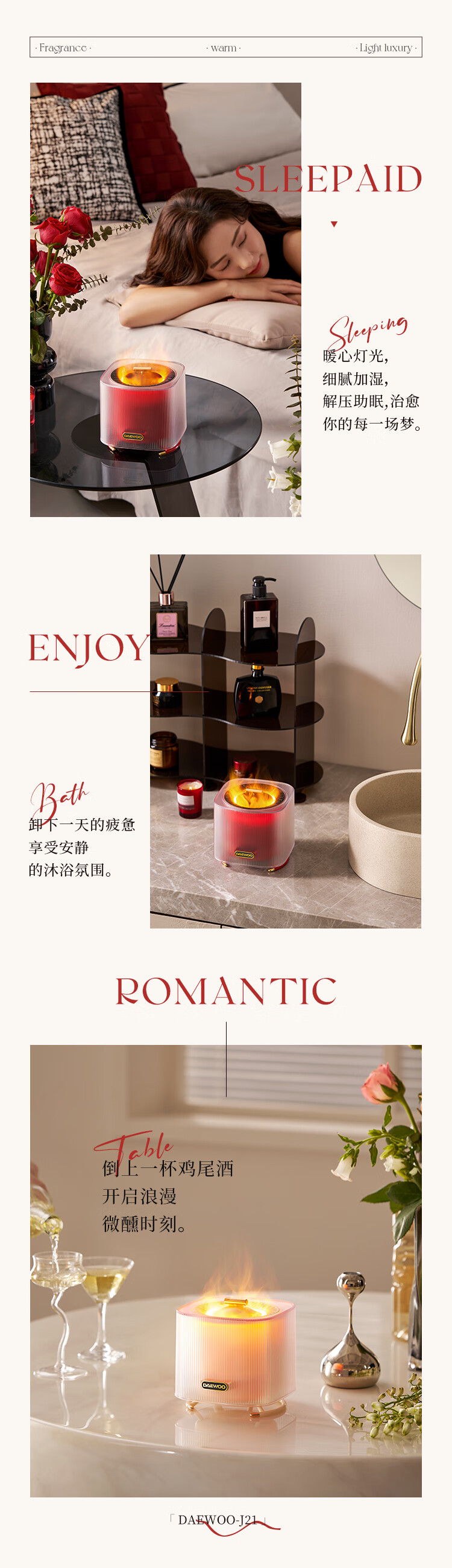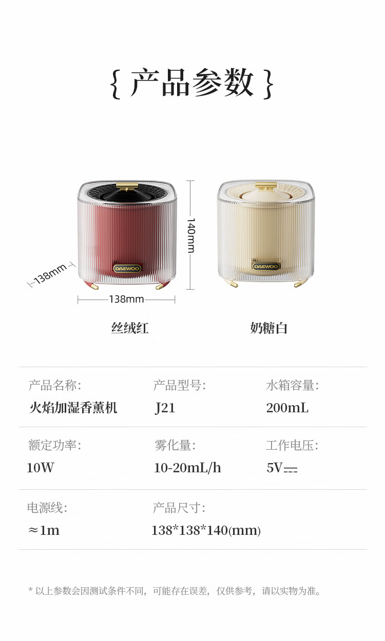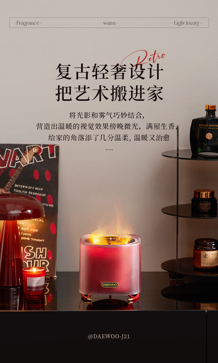 商品名称:大宇(DAEWOO)火焰加湿香薰机 10W J21