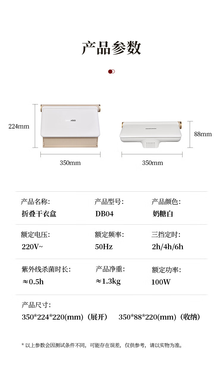 商品名称:大宇(DAEWOO)壁挂折叠干衣机 100W DB04