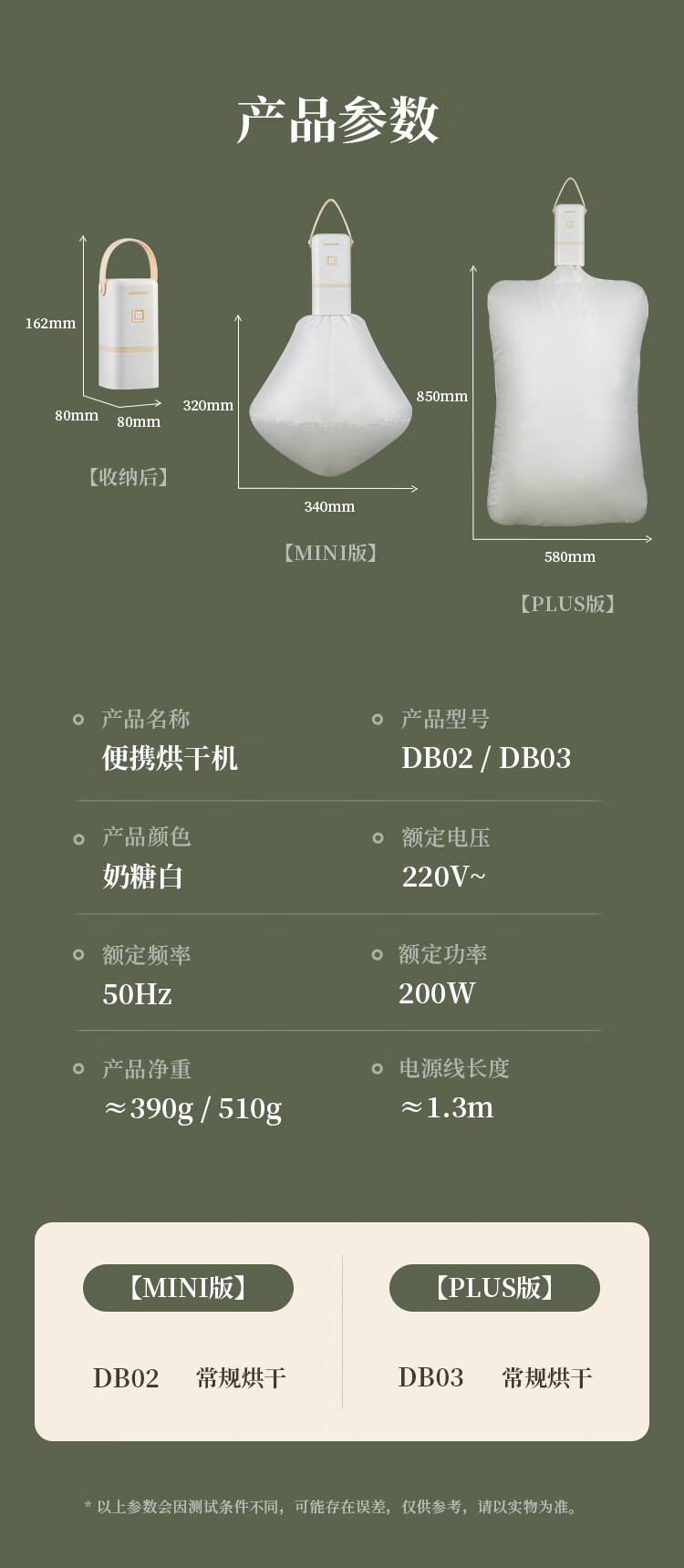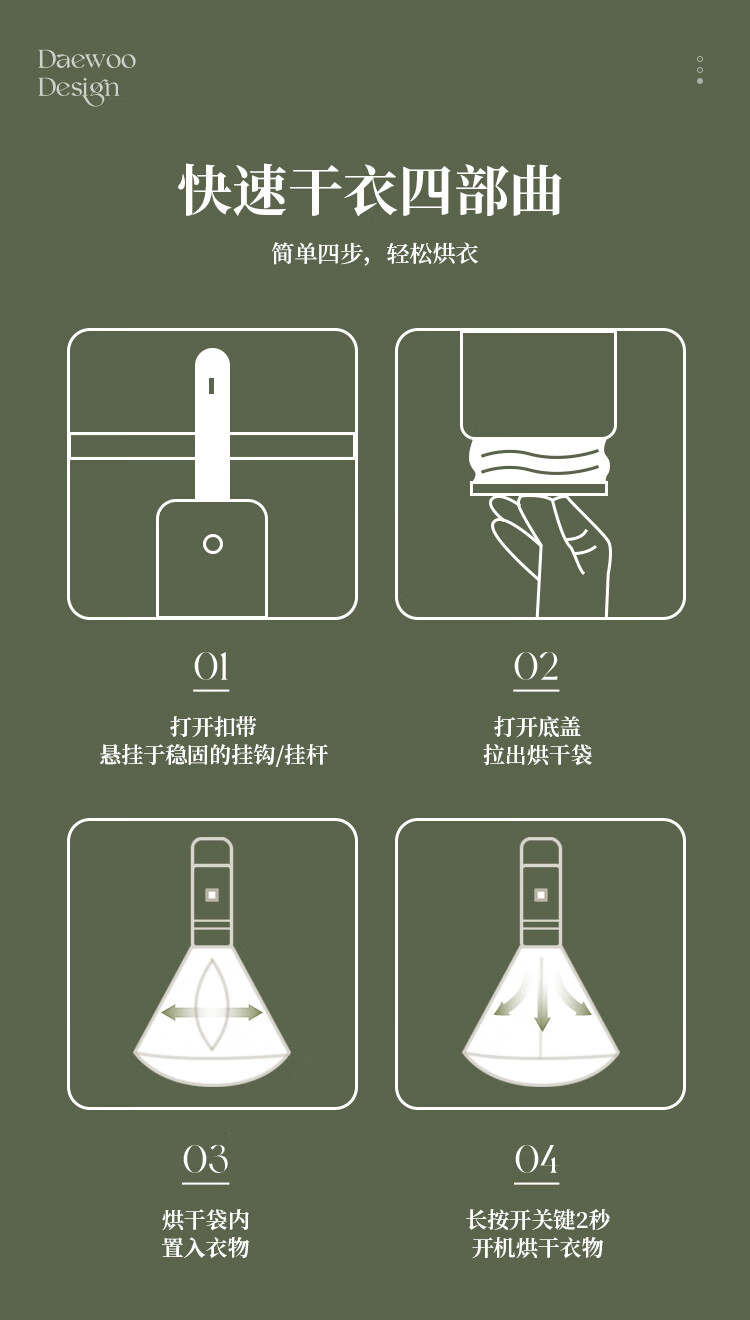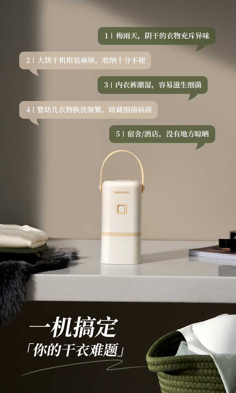 商品名称:大宇(DAEWOO)便携烘干机 200W DB03