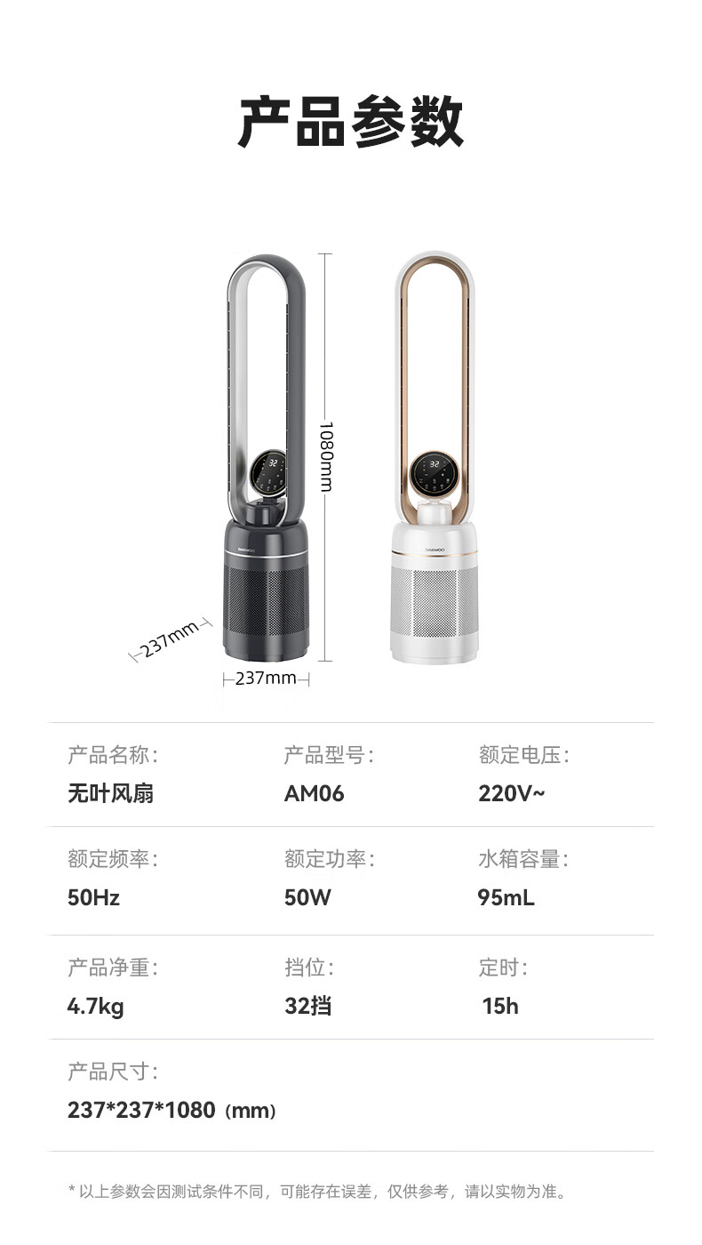 商品名称:大宇(DAEWOO) 无叶风扇 50W AM06