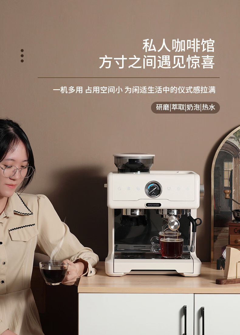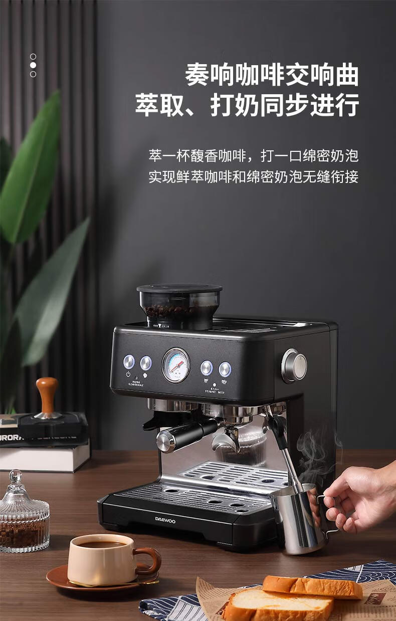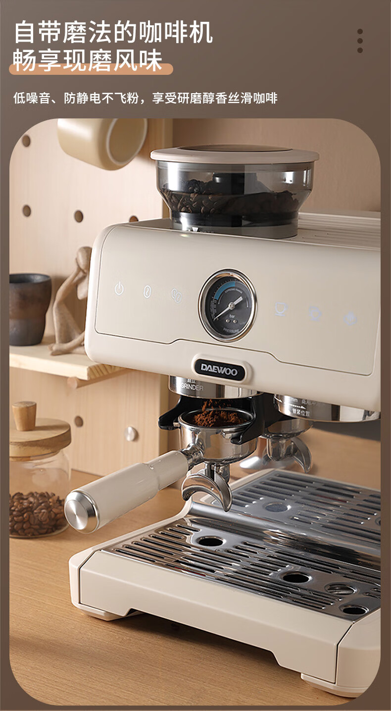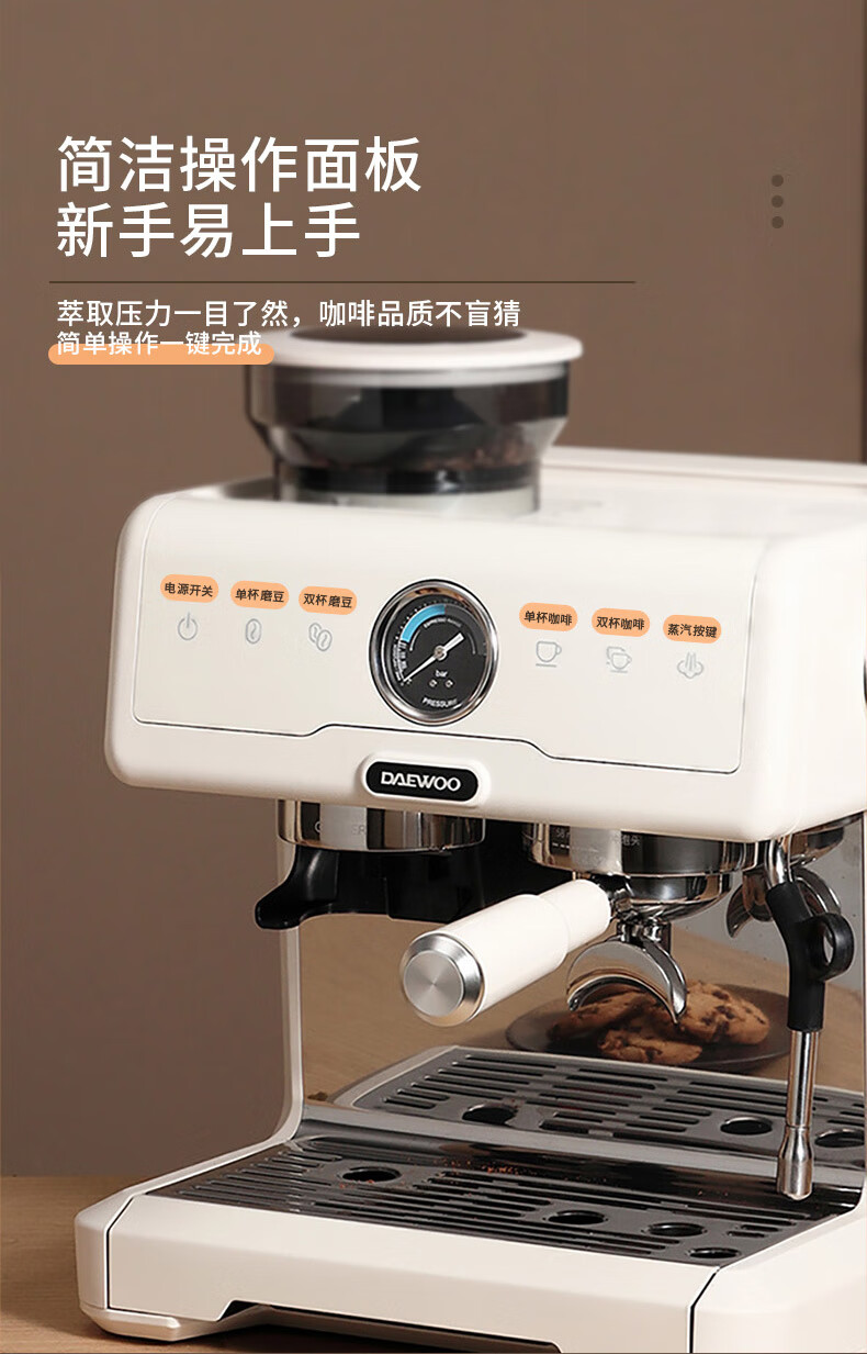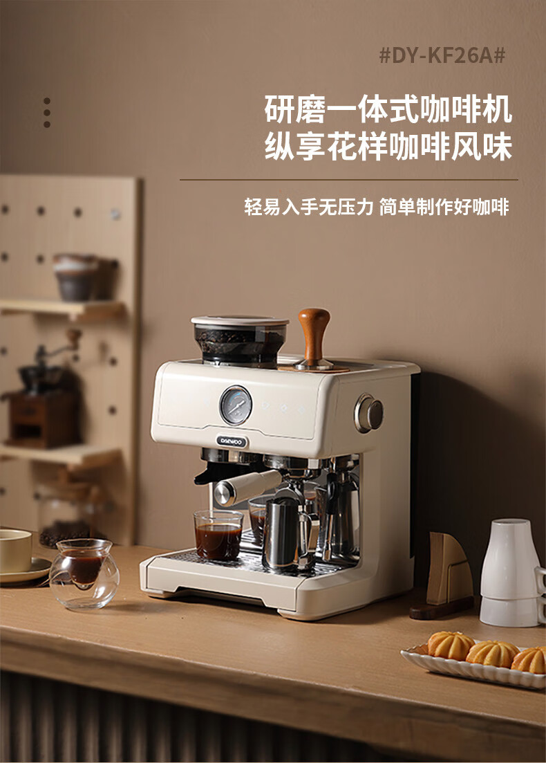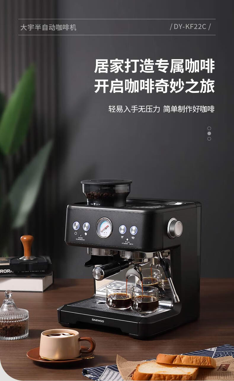 大宇(DAEWOO) 研磨一体式小型半自动咖啡机 2200W DY-KF22C(布朗黑)/DY-KF26A(科洛白)