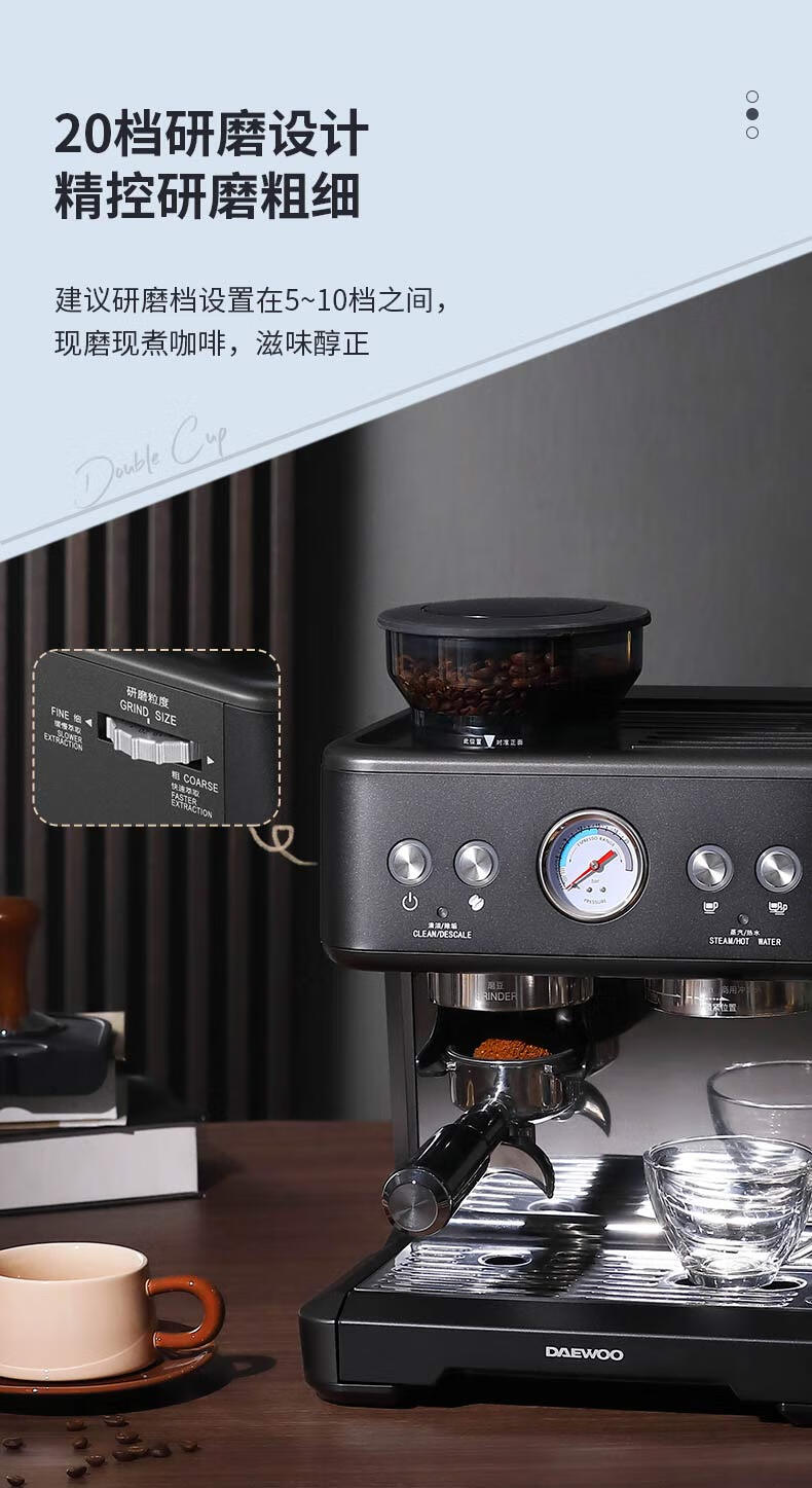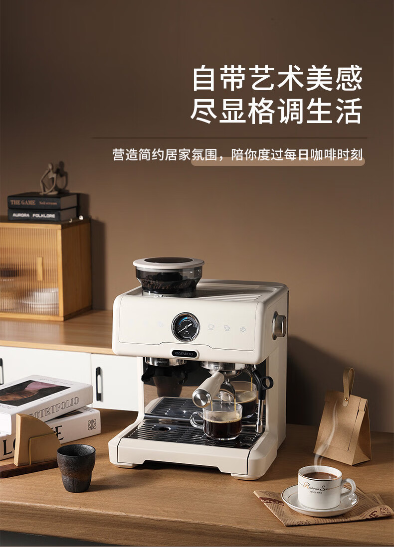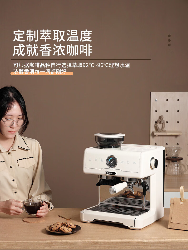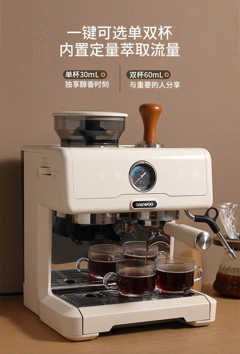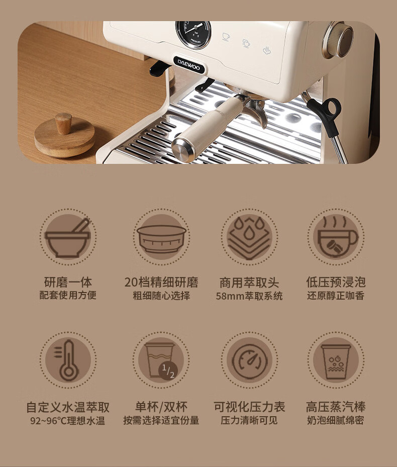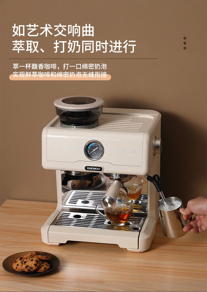 大宇(DAEWOO) 研磨一体式小型半自动咖啡机 2200W DY-KF22C(布朗黑)/DY-KF26A(科洛白)
