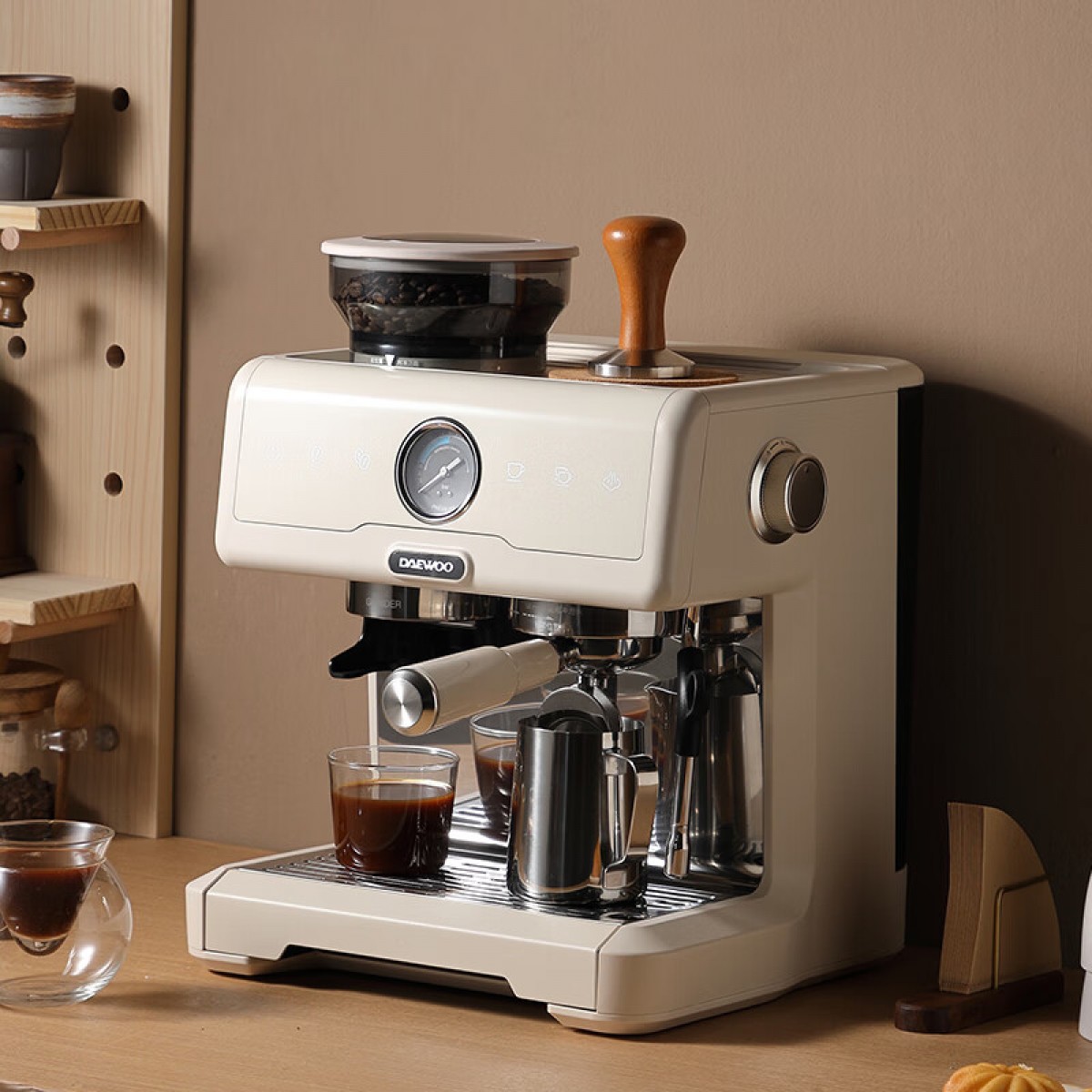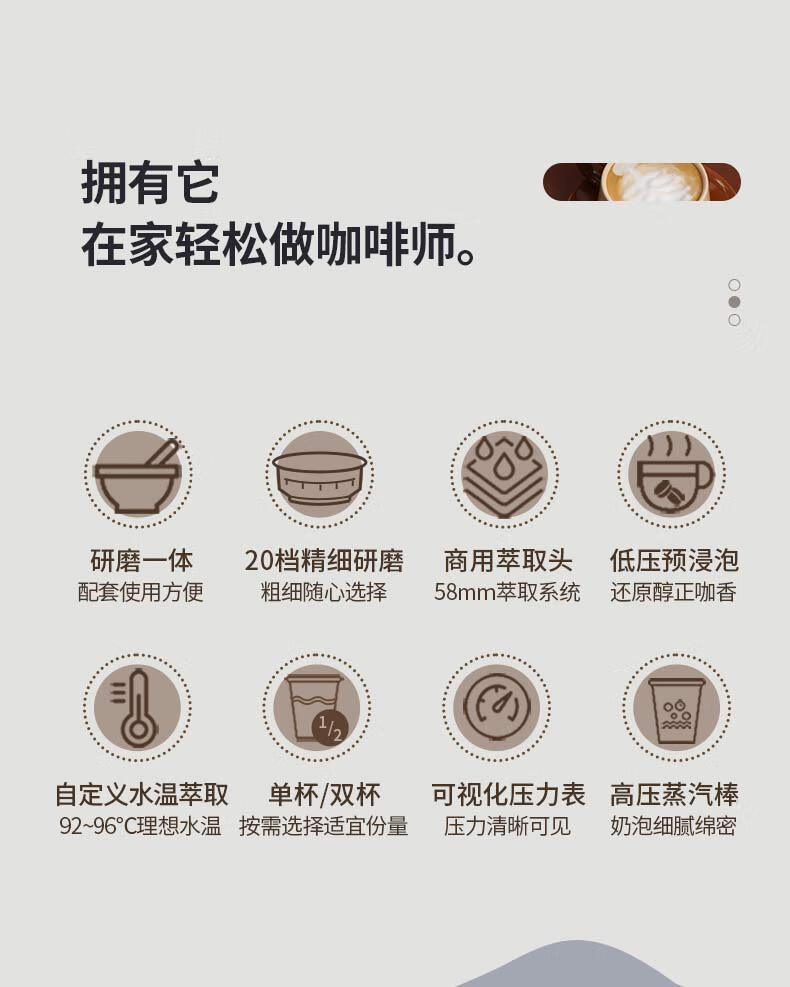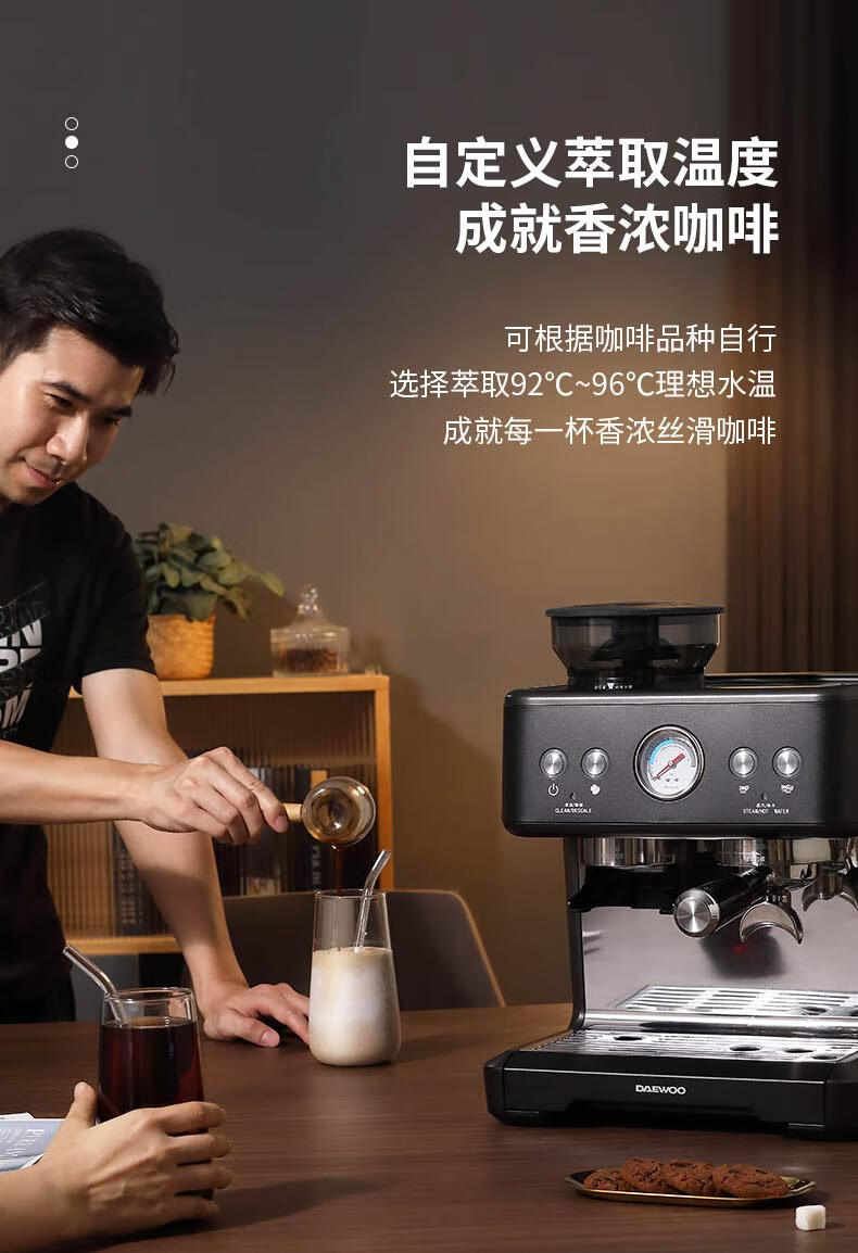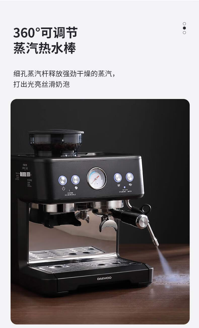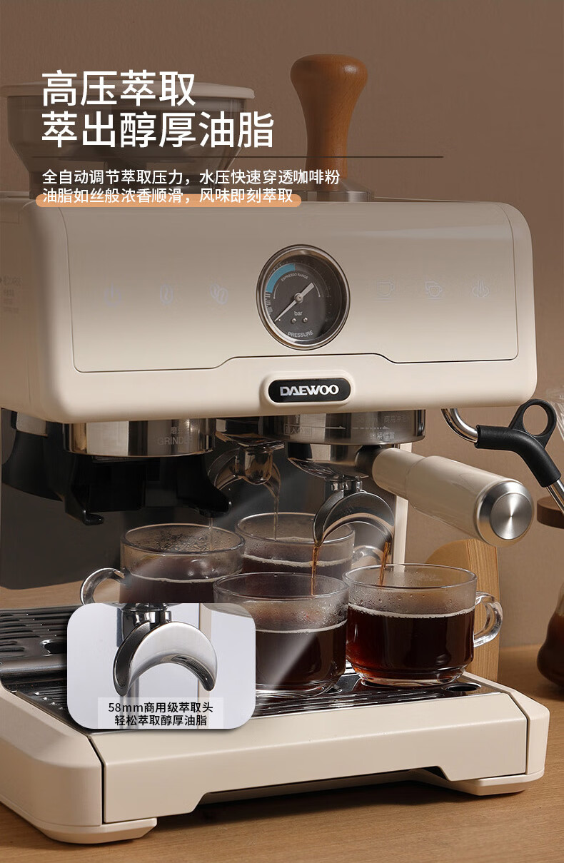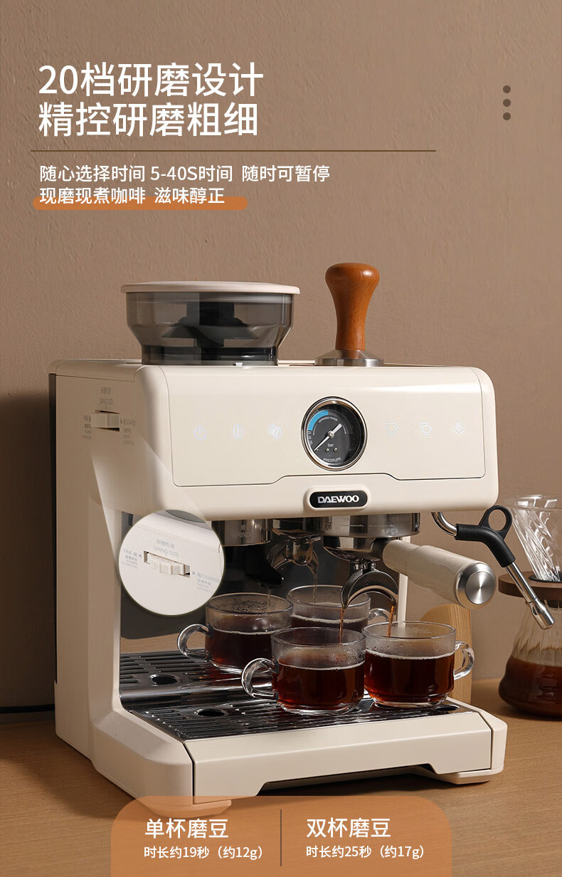 大宇(DAEWOO) 研磨一体式小型半自动咖啡机 2200W DY-KF22C(布朗黑)/DY-KF26A(科洛白)