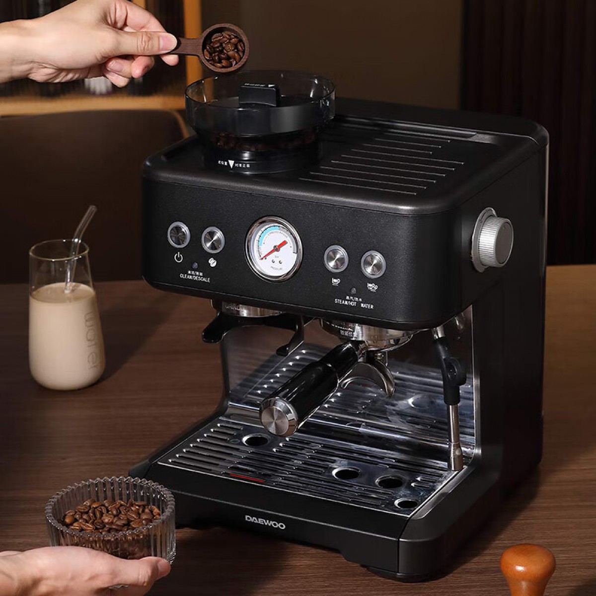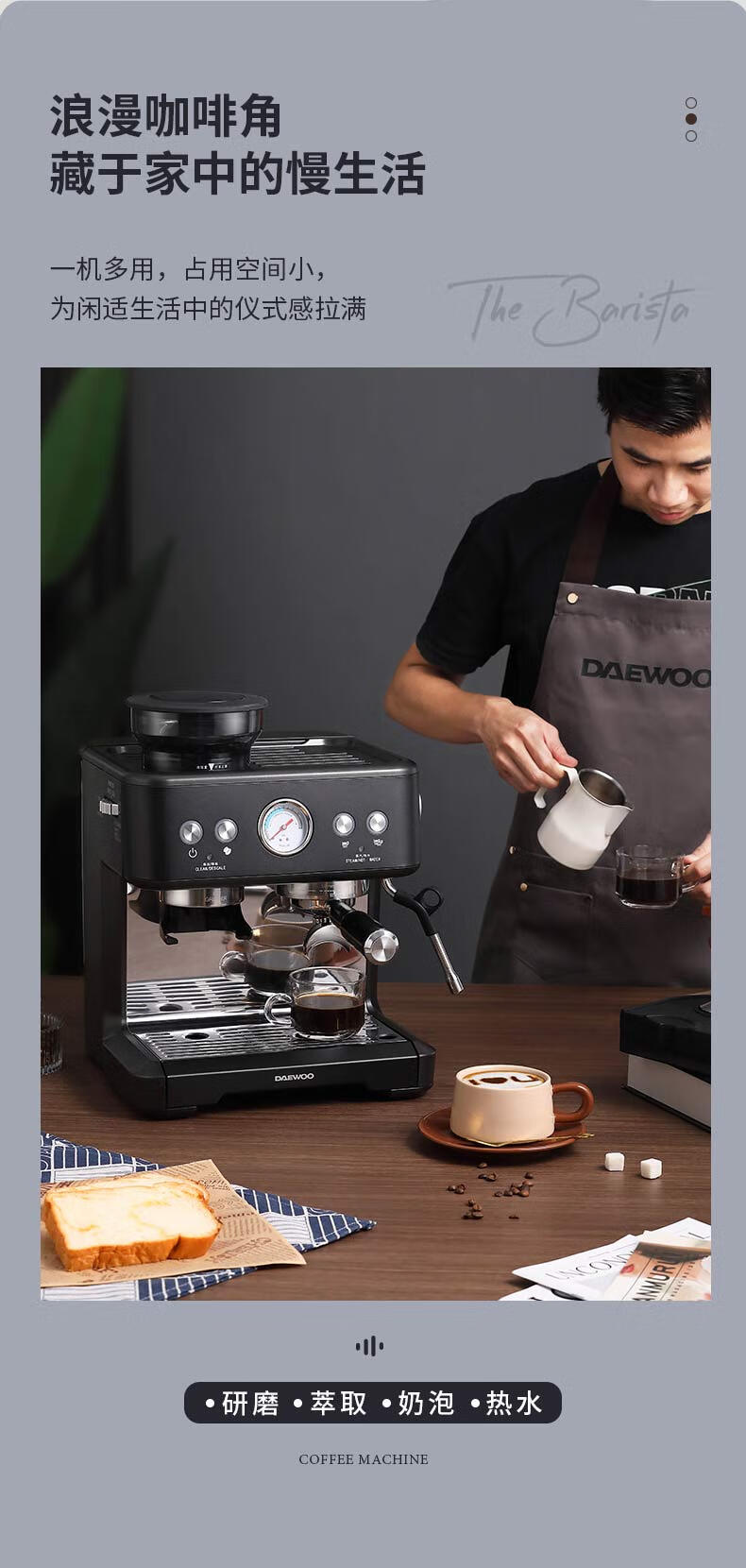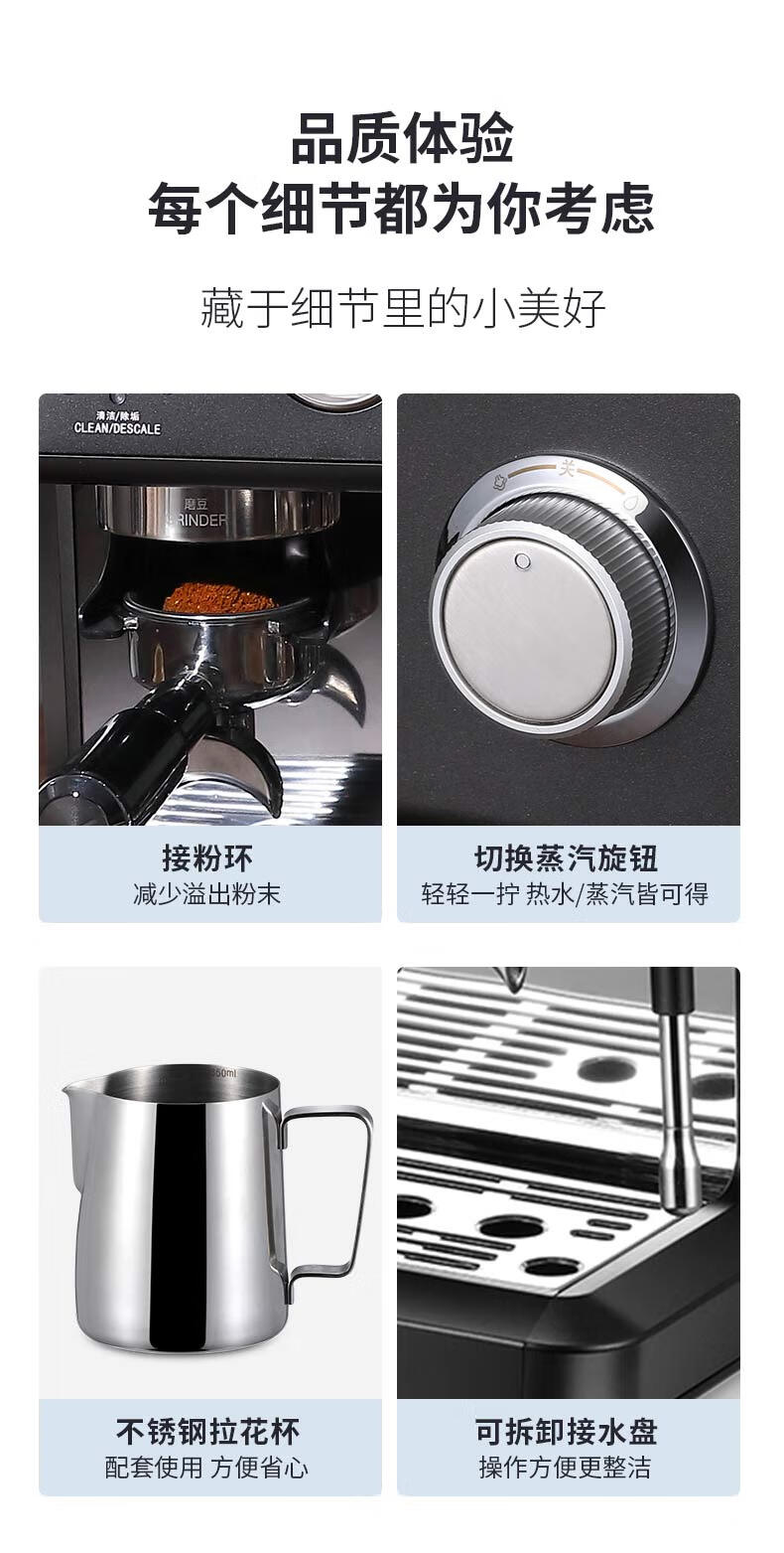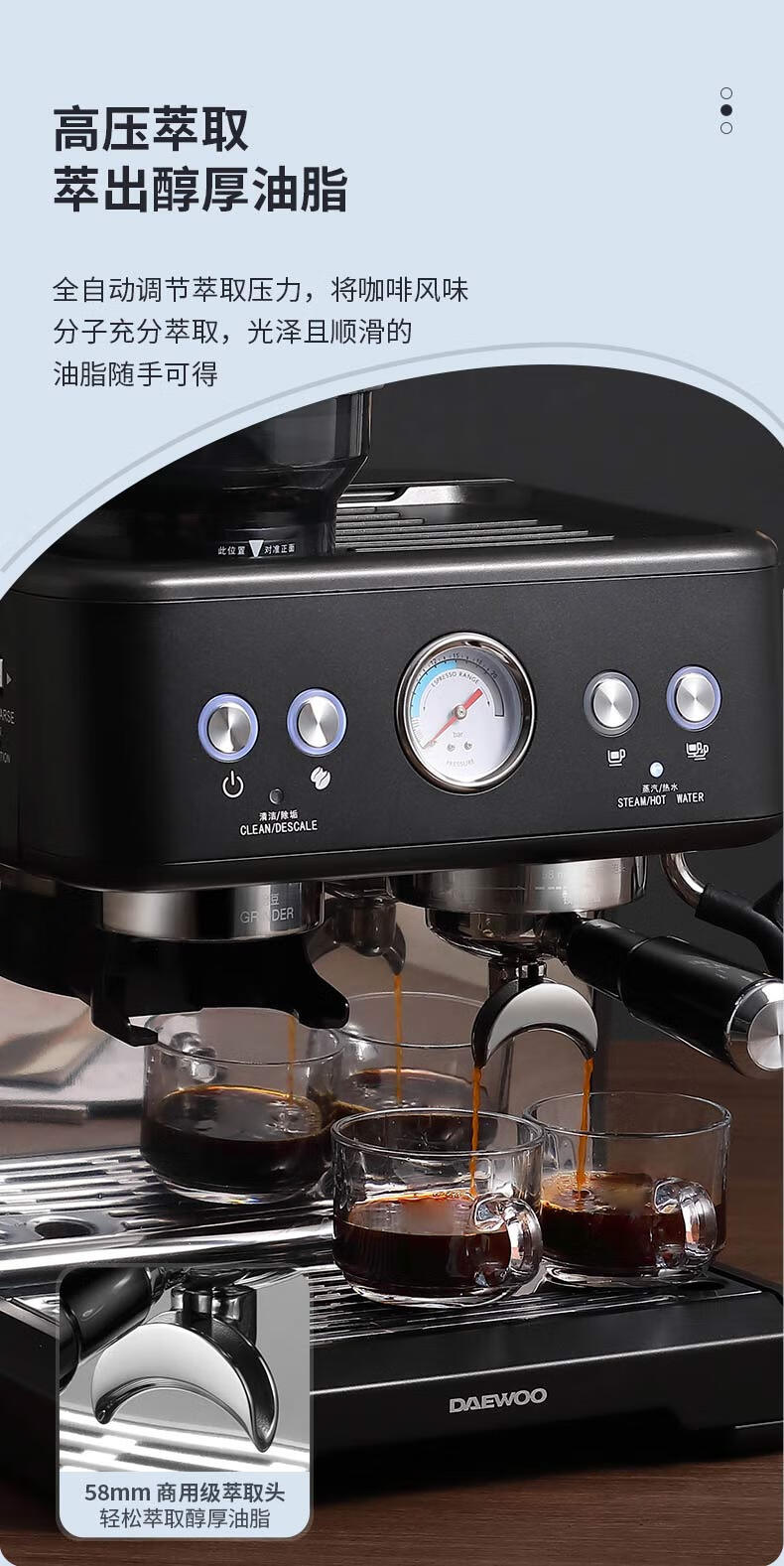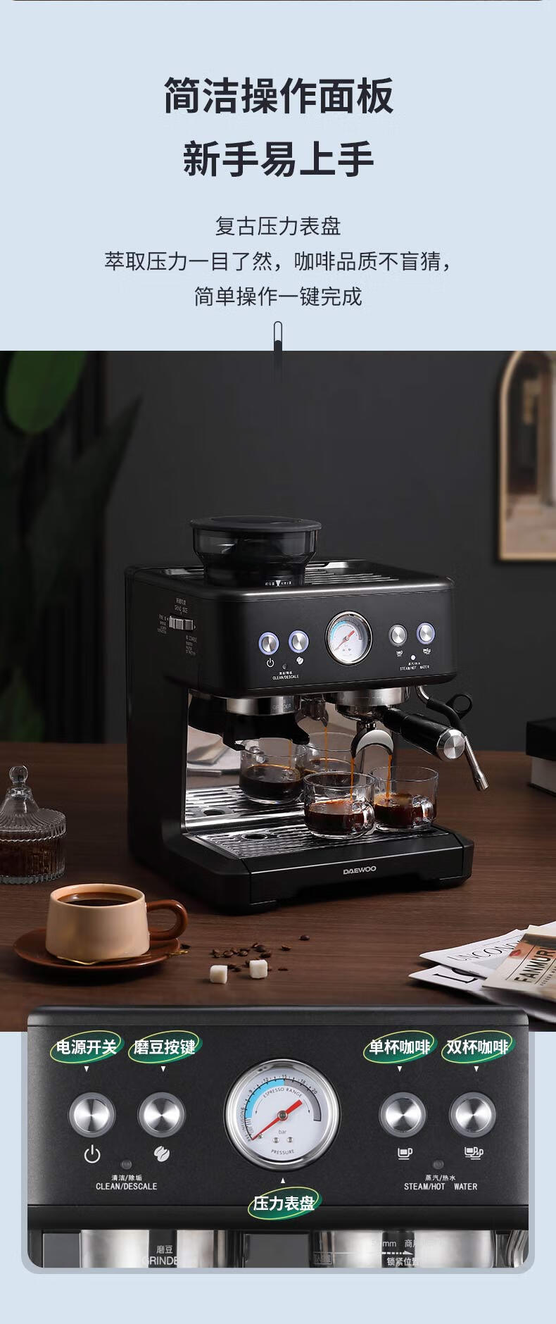 商品名称:大宇(DAEWOO) 研磨一体式小型半自动咖啡机 2200W DY-KF22C(布朗黑)/DY-KF26A(科洛白)