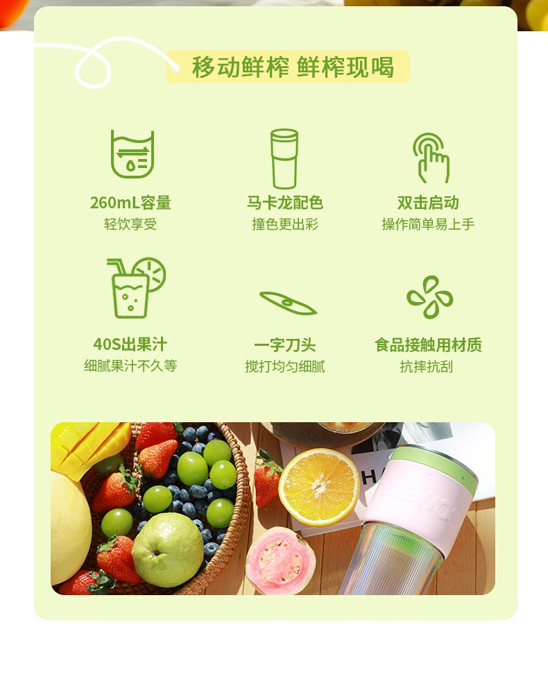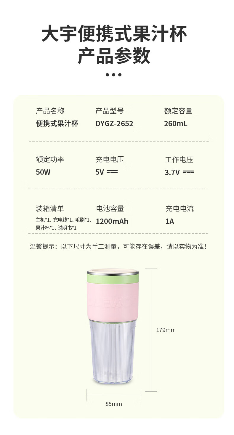 商品名称:大宇(DAEWOO) 便携式果汁杯 260mL DYGZ-2652