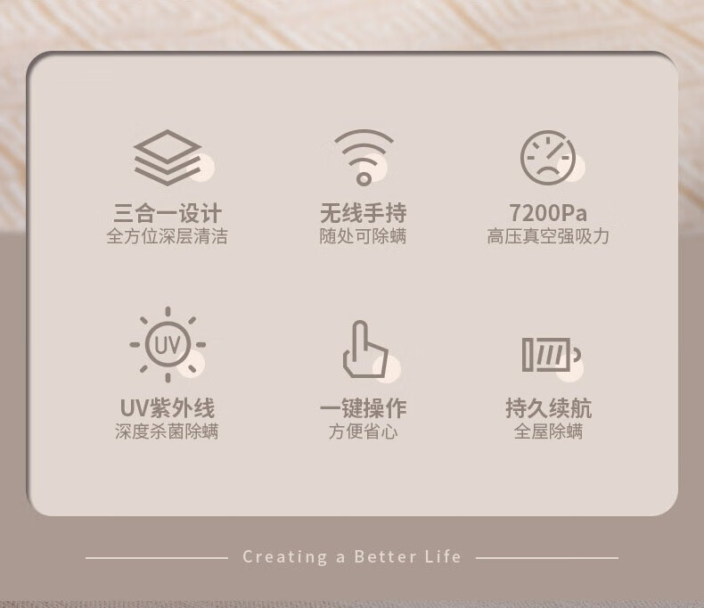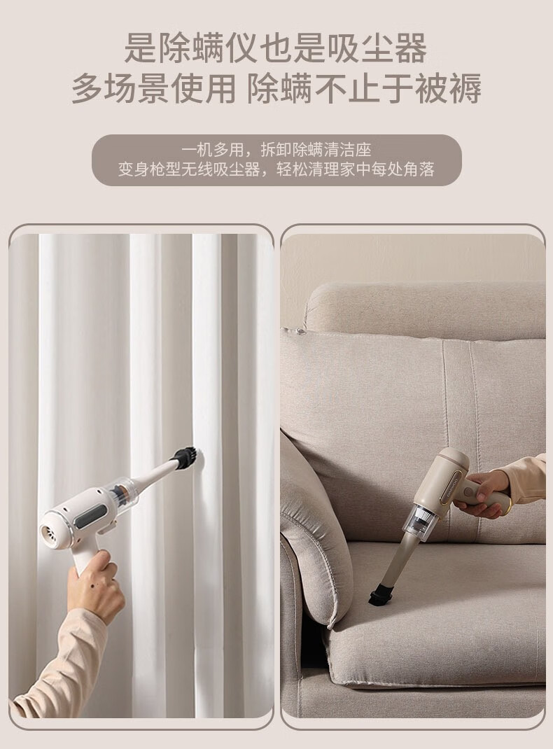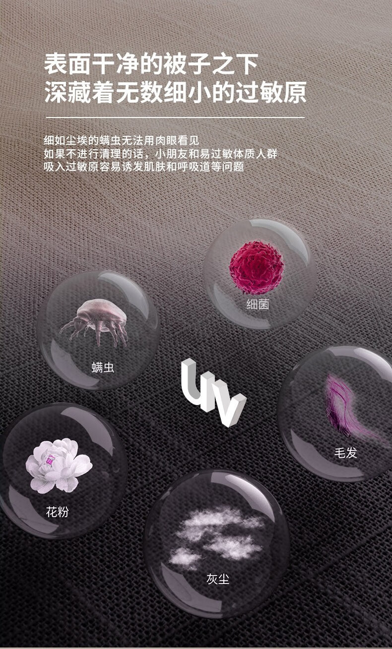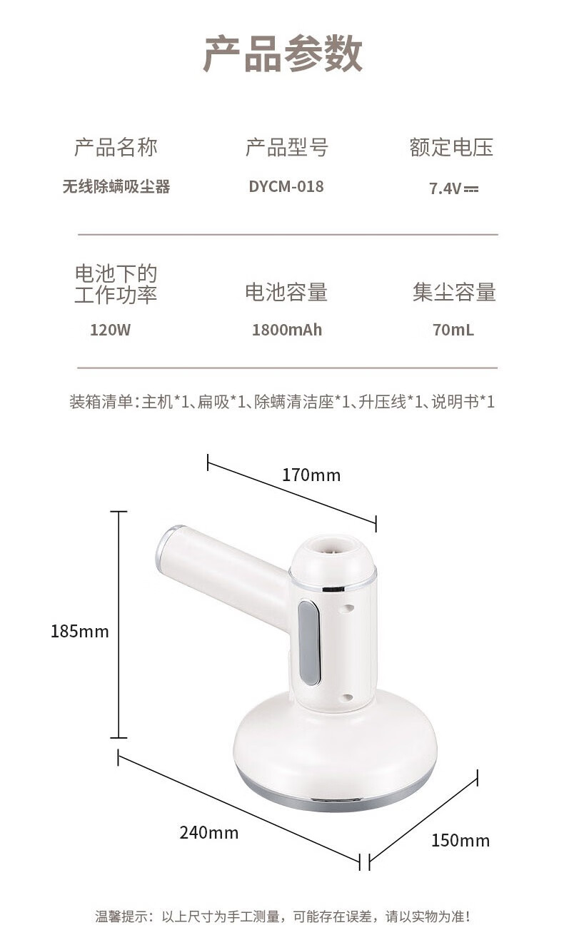 商品清单 :主机/扁吸/除螨清洁座/ 升压线/说明书