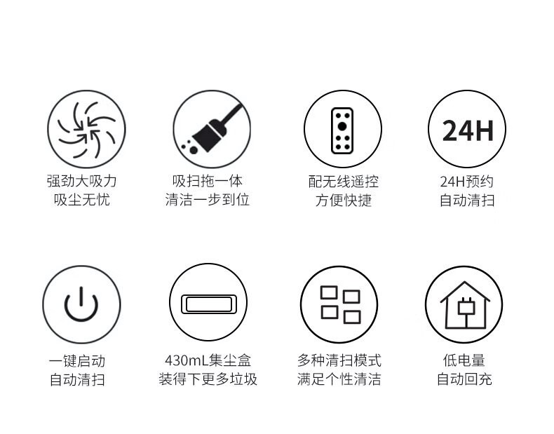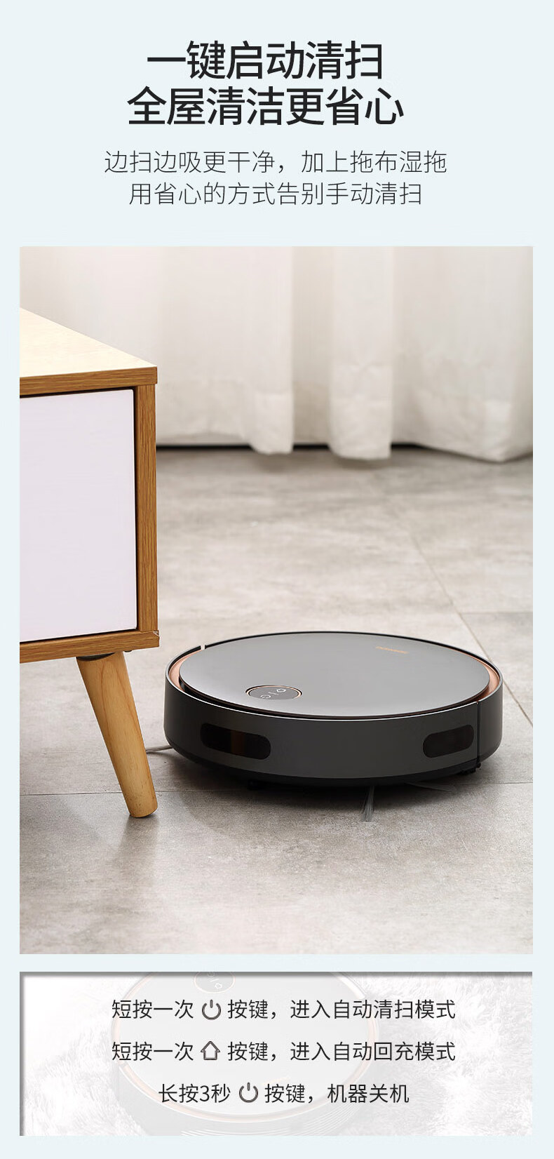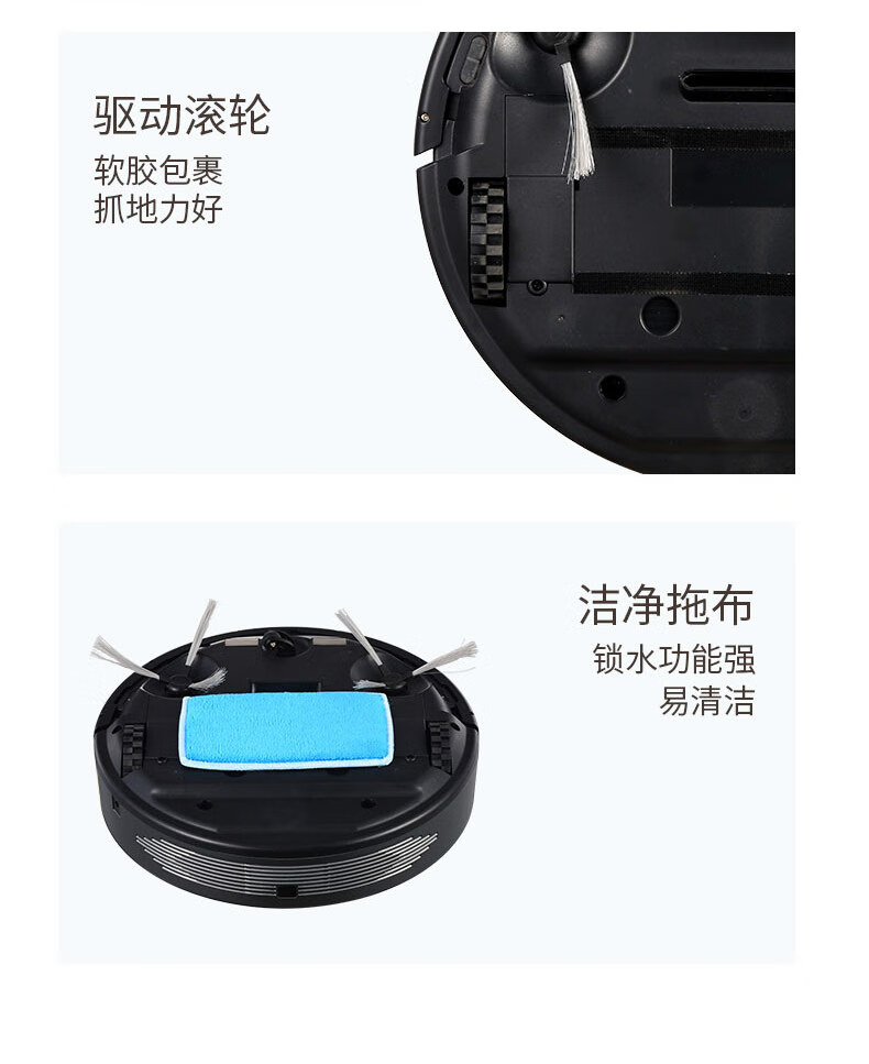 商品清单 :主机(含电池)/电源适配器/过滤网/边刷*2/遥控器/拖布/说明书