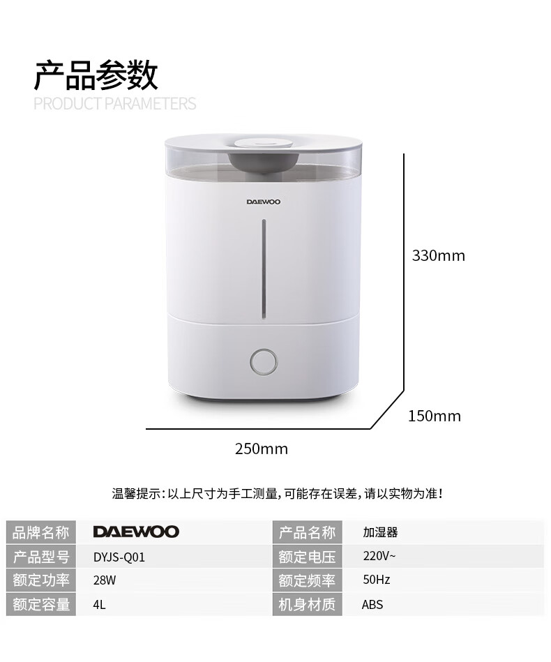 商品名称:大宇(DAEWOO) 加湿器 28W DYJS-Q01