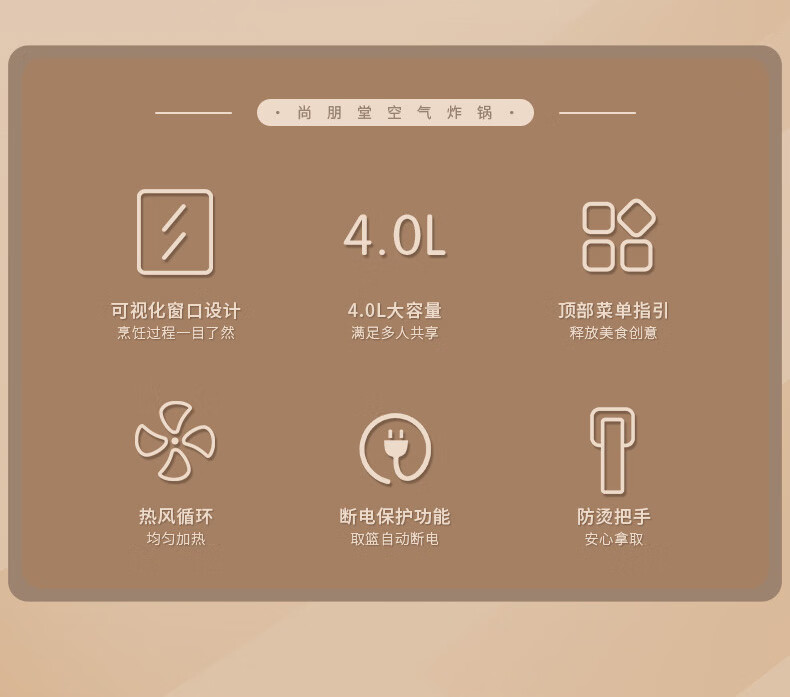 商品名称:尚朋堂 空气炸锅 1200W SPT-KZ0412A-D03
