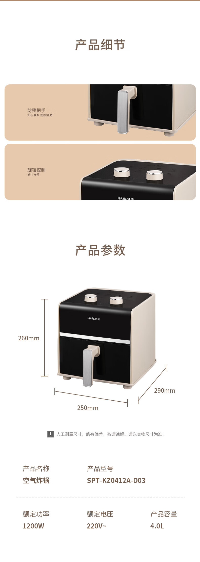 尚朋堂 空气炸锅 1200W SPT-KZ0412A-D03