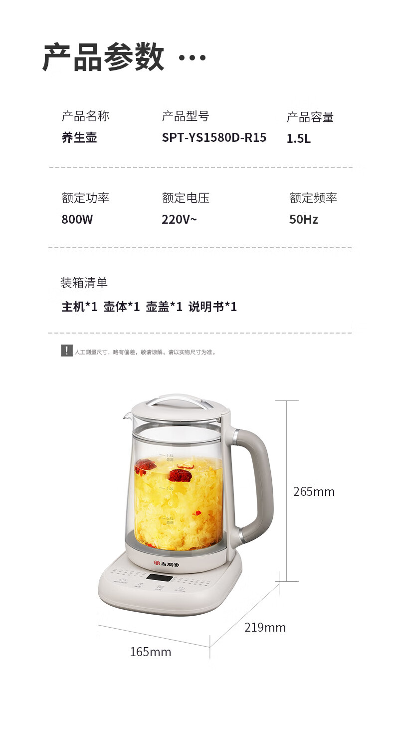 商品名称:尚朋堂 养生壶 1.5L SPT-YS1580D-R15
