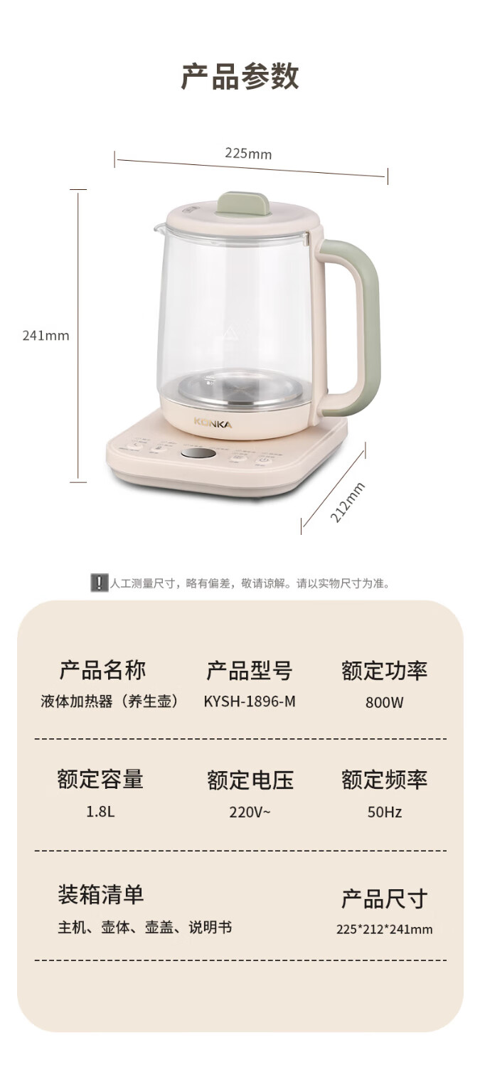 商品名称:康佳 养生壶 1.8L KYSH-1896-M