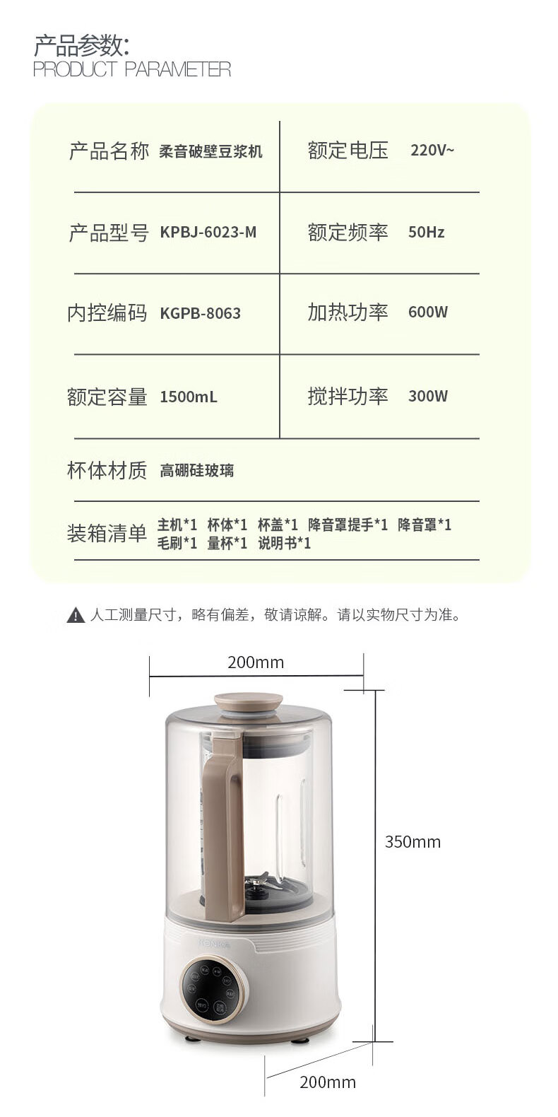 商品名称:康佳 柔音破壁豆浆机 1500mL KPBJ-6023-M