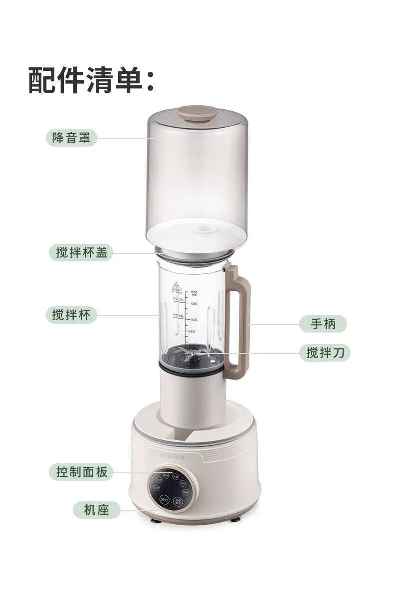 商品清单 :主机/降音罩/降音罩提手/杯体/杯盖/毛刷/量杯/说明书