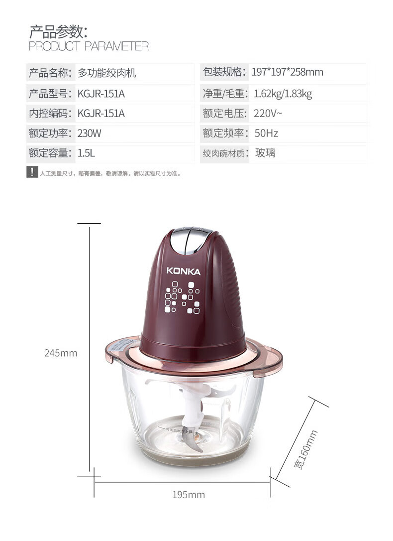 商品名称:康佳 食品加工器(碎肉机) 1.5L KGJR-151A