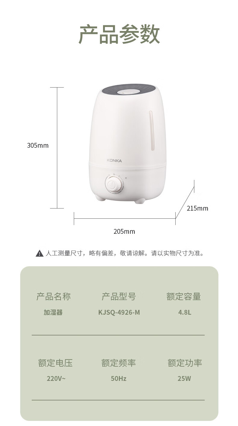 商品名称:康佳 加湿器 25W 4.8L KJSQ-4926-M