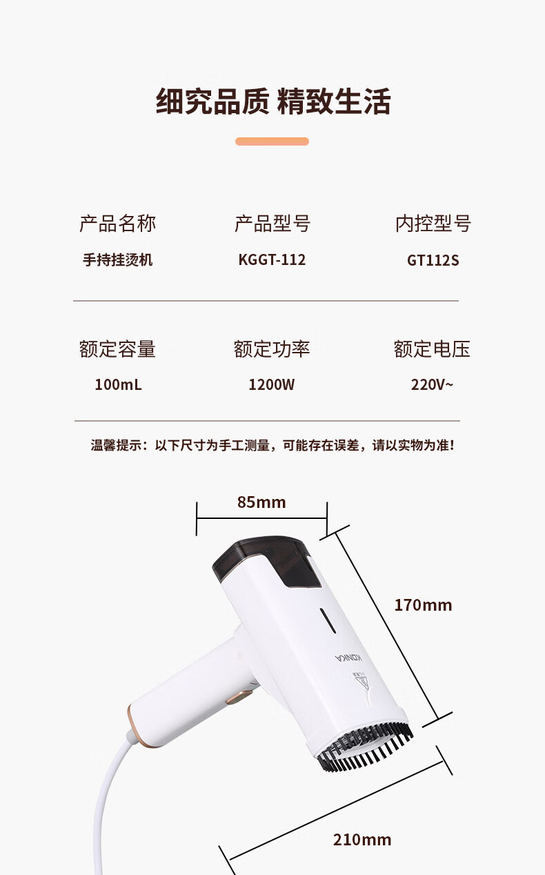 商品名称:康佳 手持挂烫机 1200W KGGT-112
