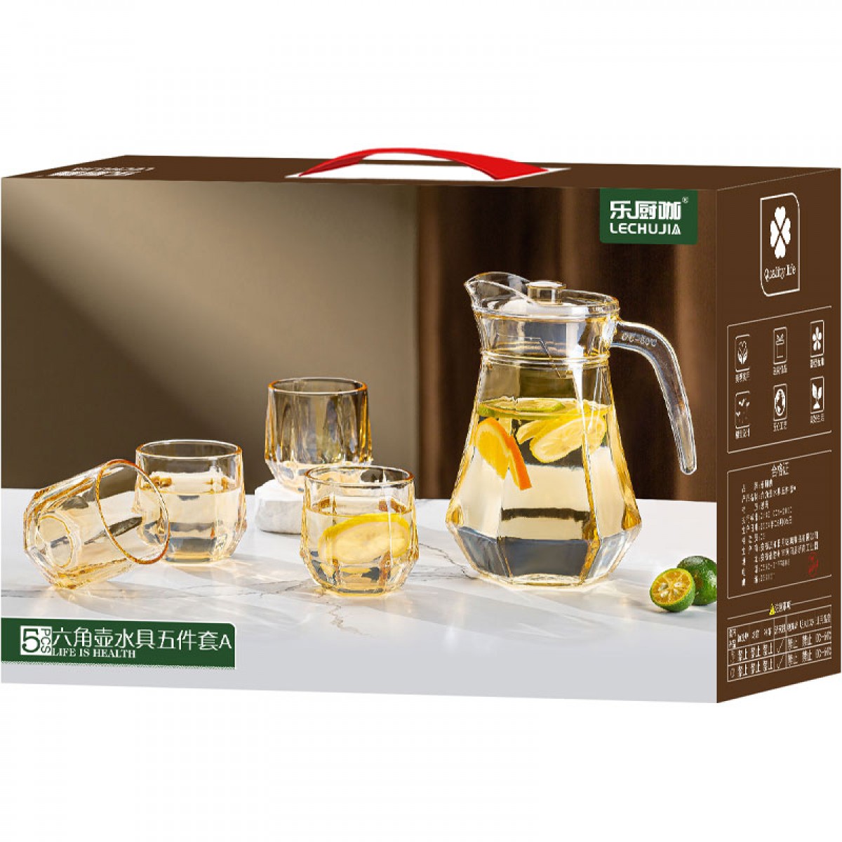 商品名称:乐厨咖 六角壶水具五件套 壶1000ml/ 杯260ml YTLJH/L5A