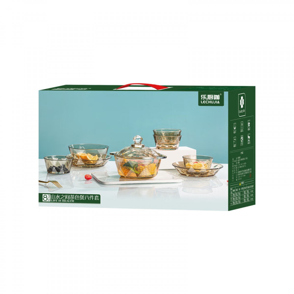 商品名称:乐厨咖 山水之间茶色煲八件套 煲800ml/大碗800ml/小碗400ml YTSSZJCSB/L8