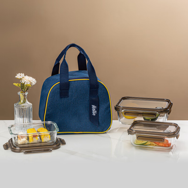 乐厨咖 乾坤大挪移保鲜盒三件套A 大长1100ml *1+中长700ml *2+布包*1 YTQBXH/L3A