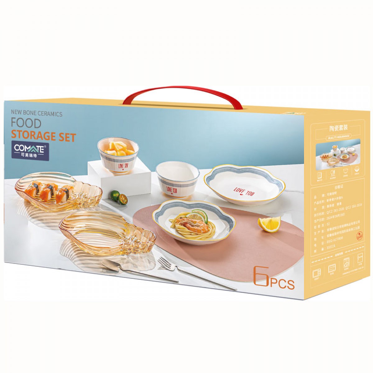 可美瑞特(COMATE) 新骨瓷六件套A 荷口盘:20.5cm小碗:11.5cm海螺饺子盘:25cm YTXGC/L6A