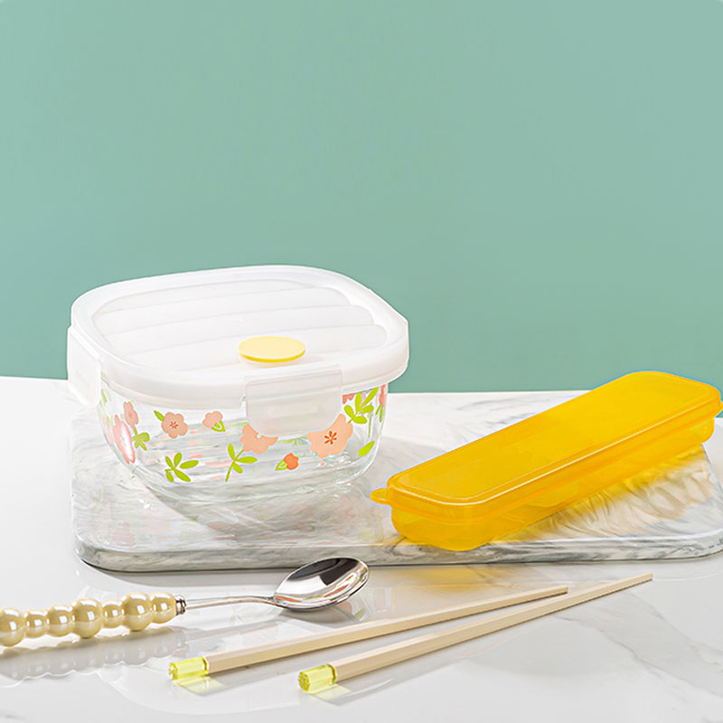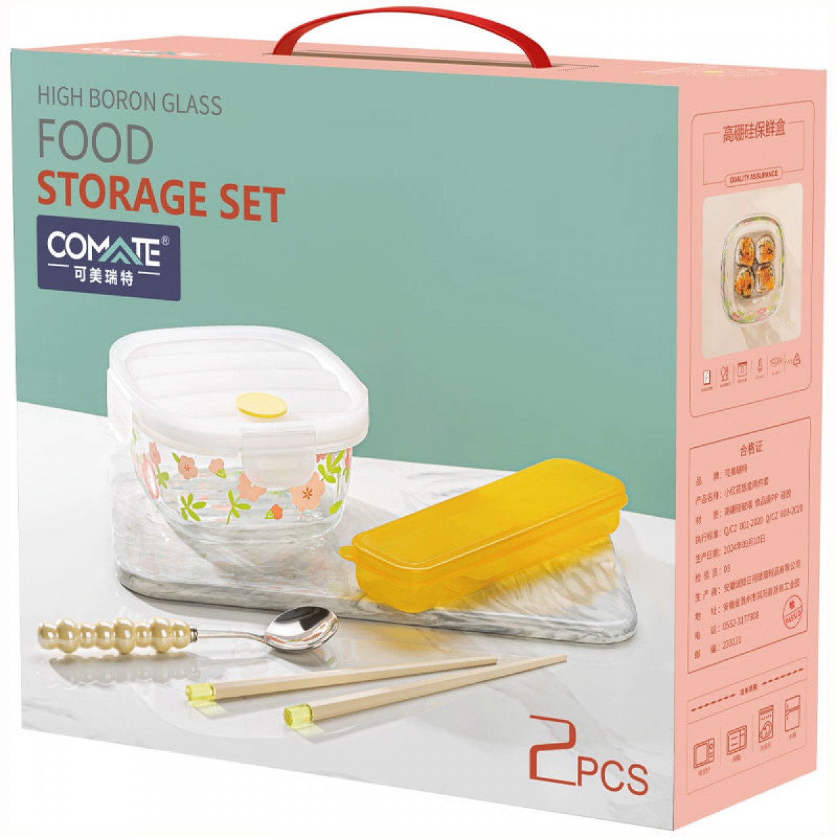 可美瑞特(COMATE) 小红花饭盒两件套 正方形650ml*1++勺筷套装*1 YTXHHFH/L2