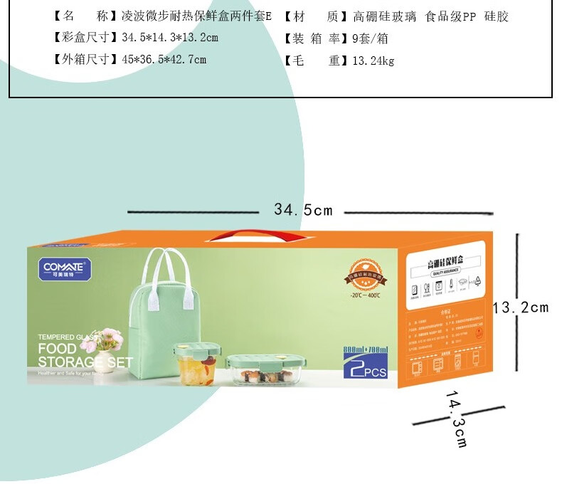 商品名称:可美瑞特(COMATE)凌波微步耐热保鲜盒两件套E 椭圆800ml小汤桶700ml YTLBWBBXH/L2E