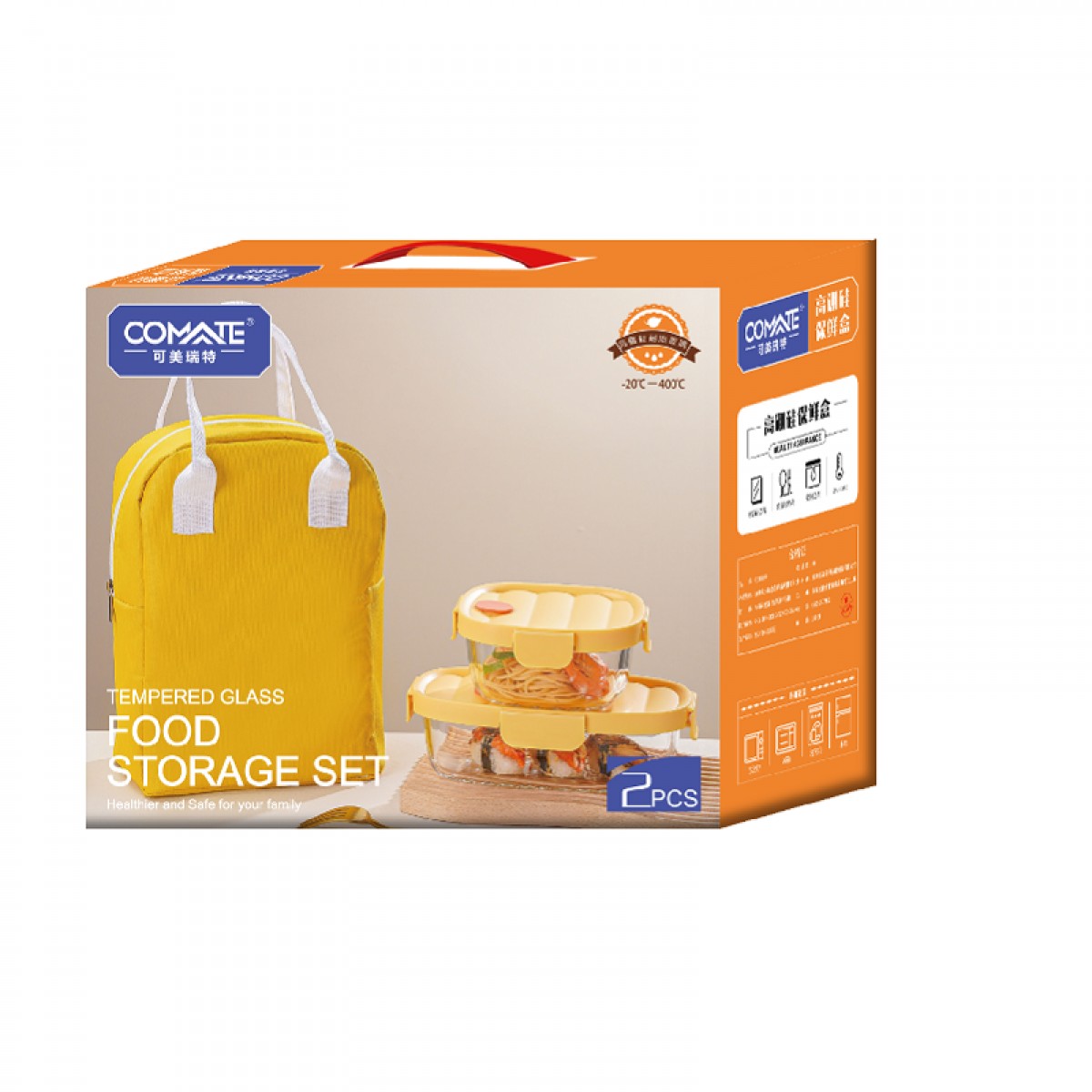 可美瑞特(COMATE)凌波微步耐热保鲜盒两件套A 椭圆800ml*1+正方形650ml*1+布包*1 YTLBWBBXH/L2A