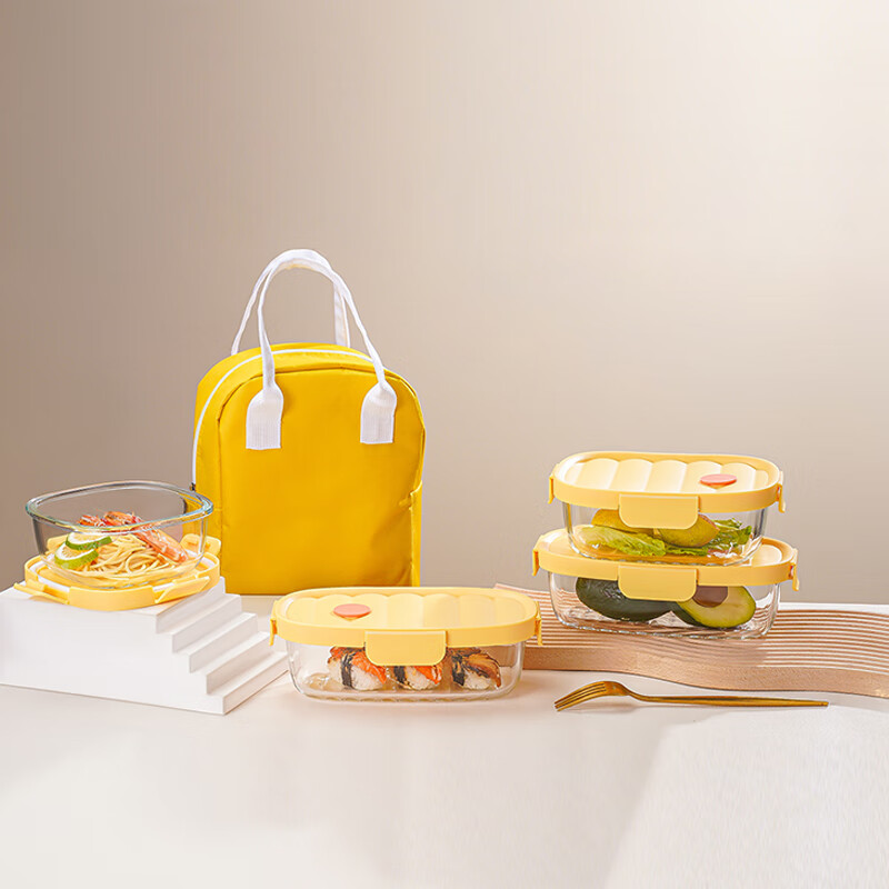 可美瑞特(COMATE)凌波微步耐热保鲜盒四件套 椭圆800ml*2+正方形650ml*1+长方形950ml*1+布包*1 YTLBWBBXH/L4