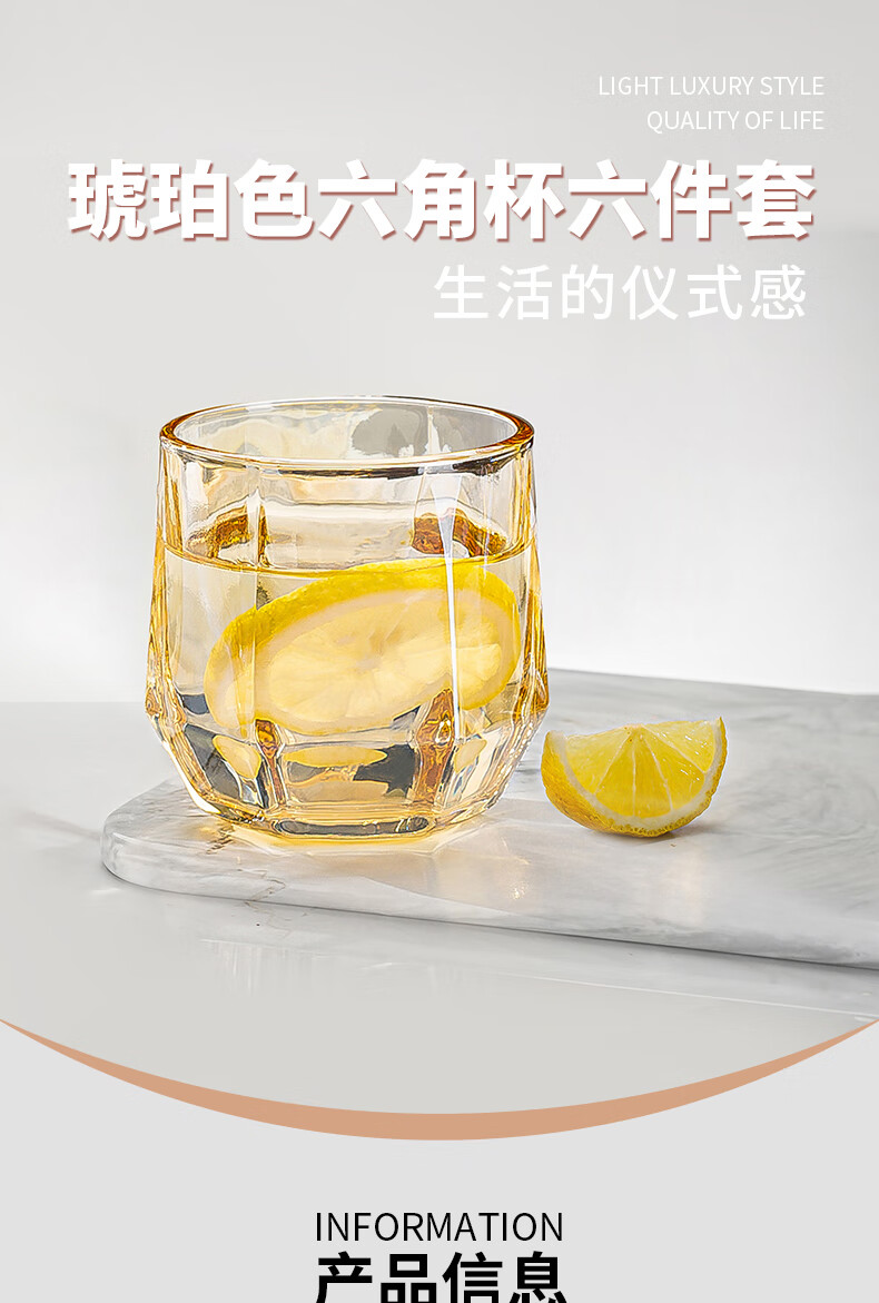 可美瑞特(COMATE)琥珀色六角杯六件套 杯250ml*6 YTHPLJB/L6