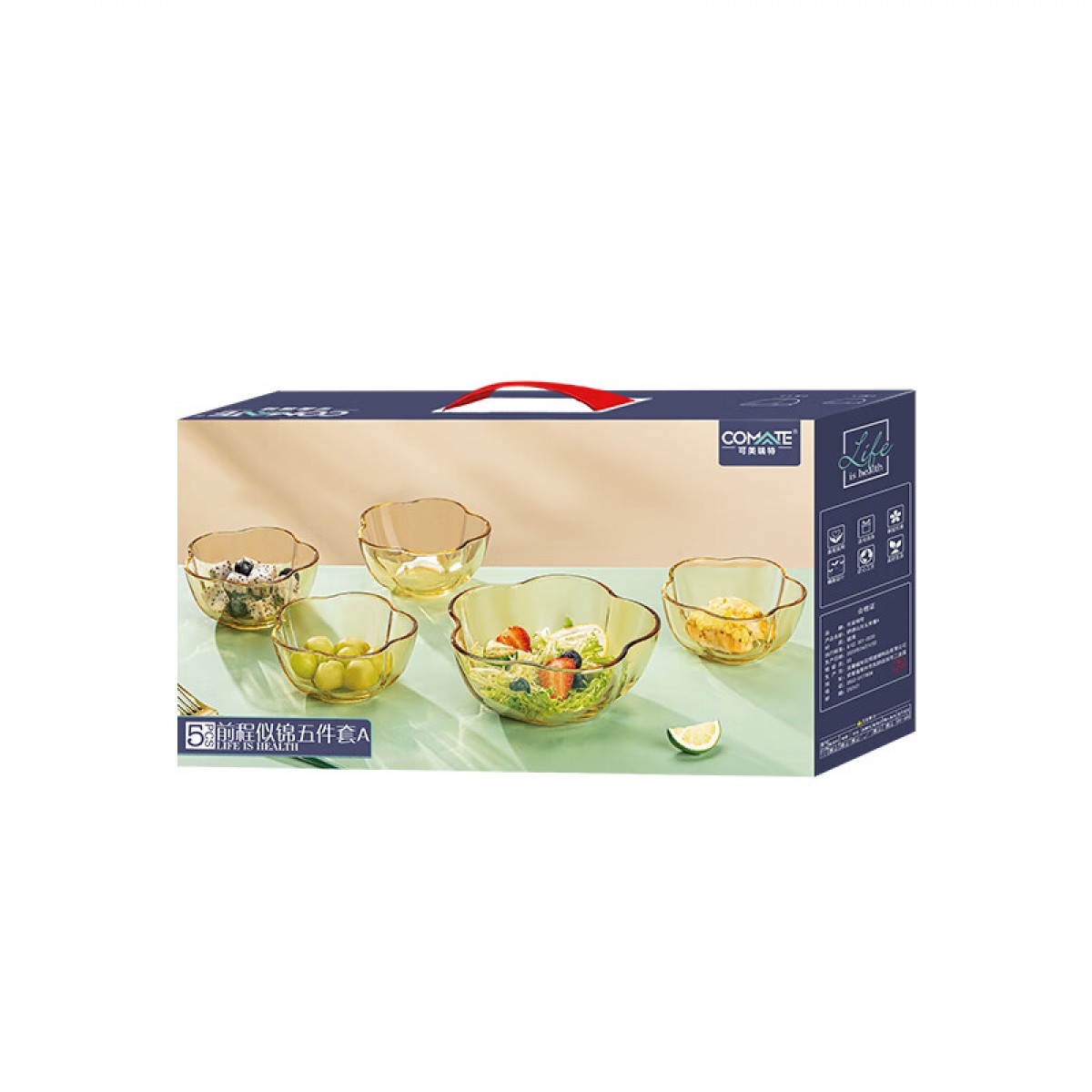 商品名称:可美瑞特(COMATE)前程似锦五件套A 小碗290ml *4+大碗750ml*1 YTQCSJ/L5A