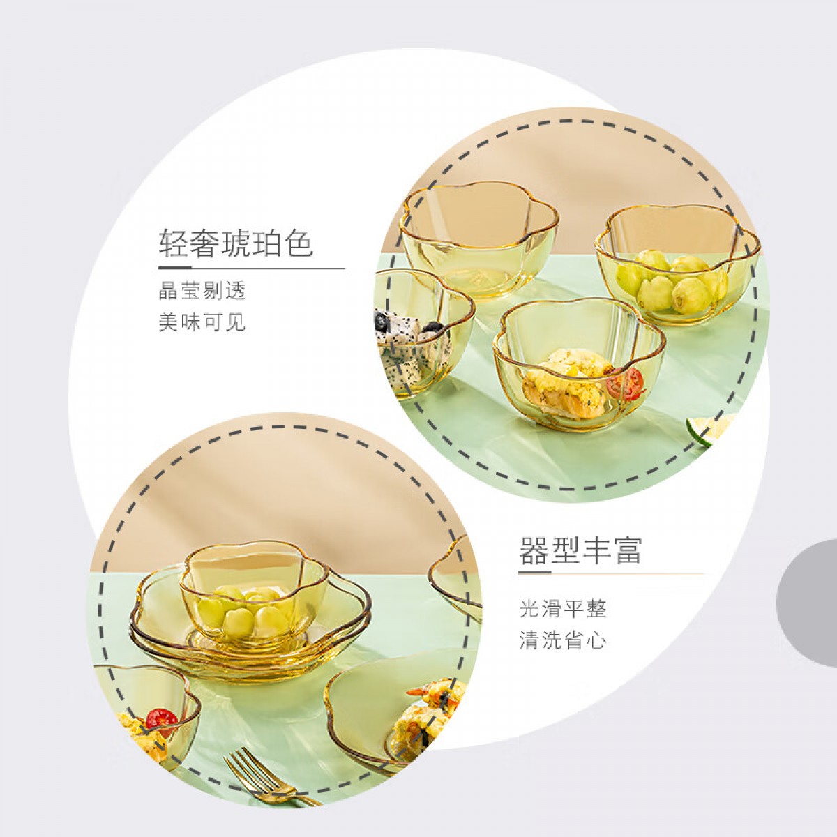 可美瑞特(COMATE)前程似锦玻璃煲八件套 小碗290ml*4+盘*4 YTQCSJ/L8