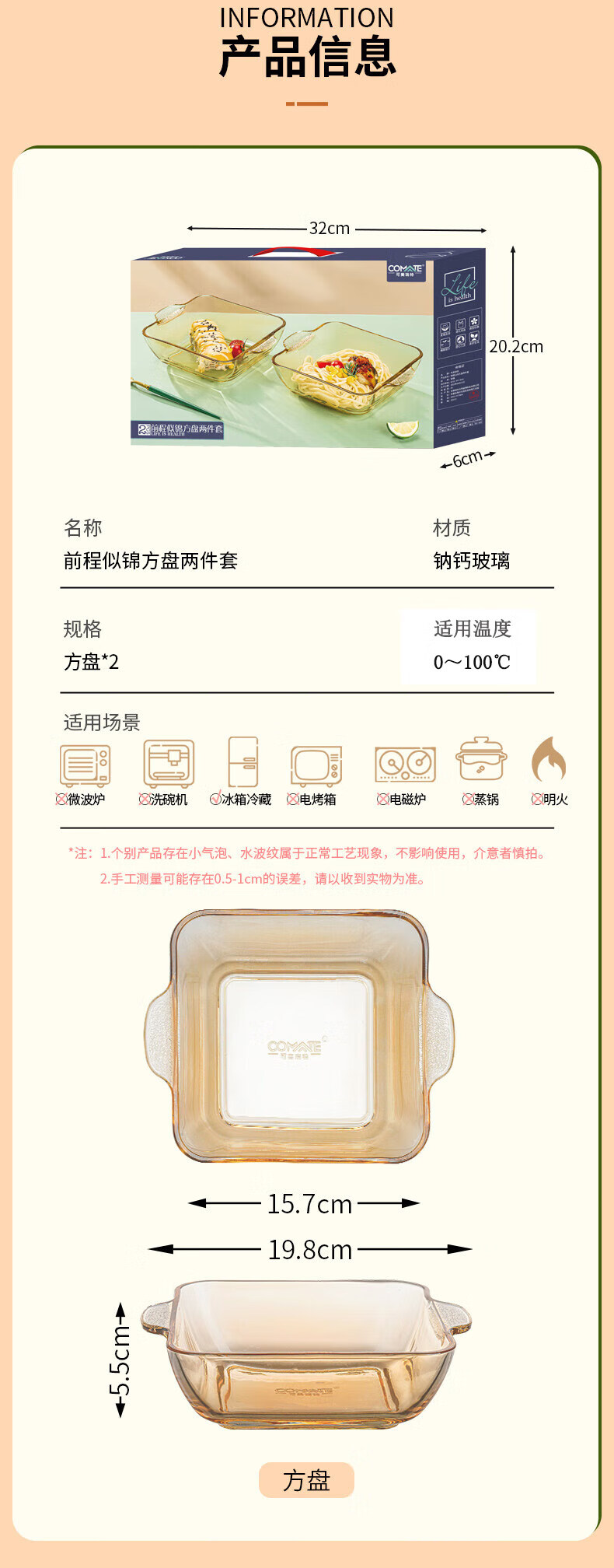 商品名称:可美瑞特(COMATE)前程似锦方盘两件套 方盘850ml*2 YTFP/L2